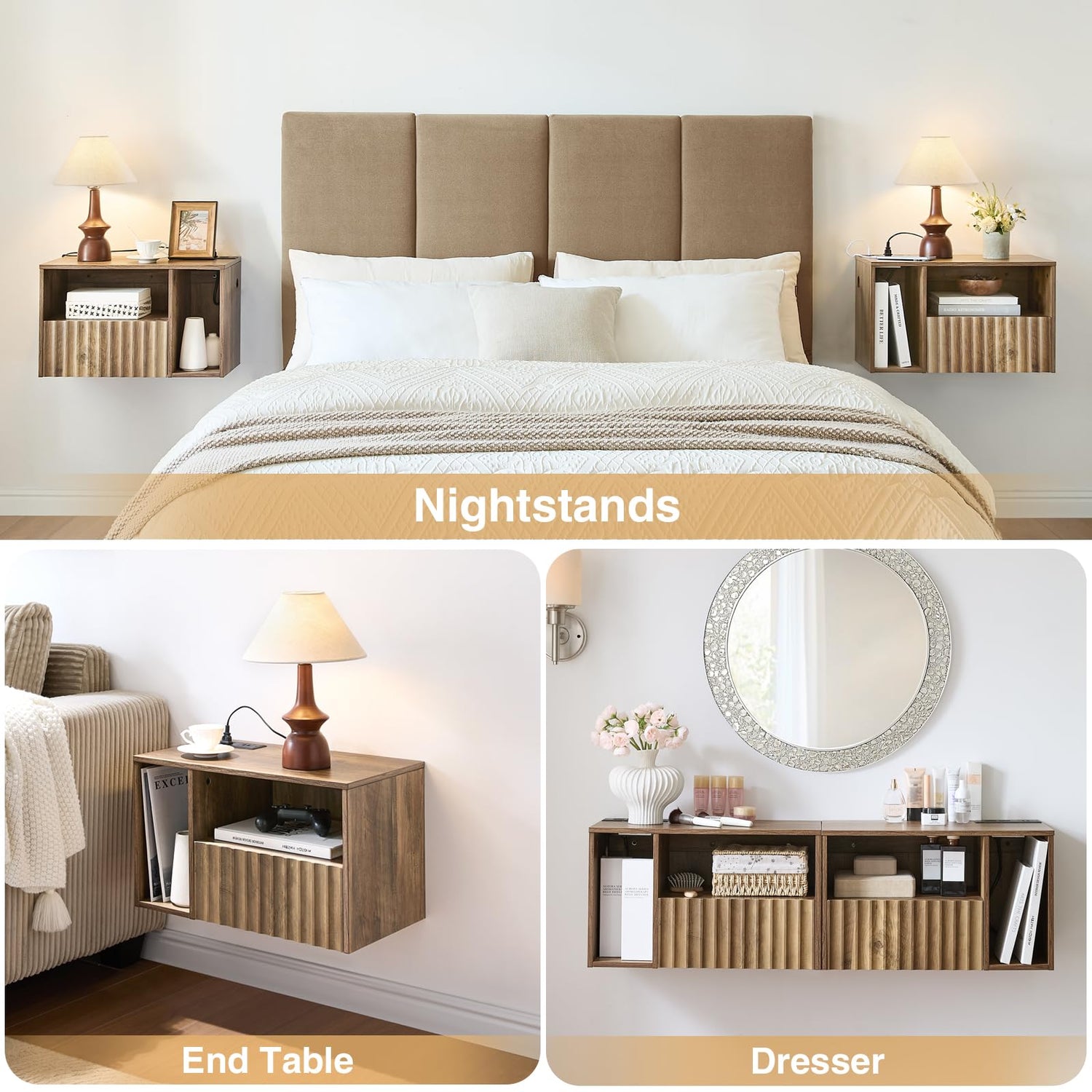 - Larger Storage:Compared to most floating nightstands, ours offers larger storage to accommodate more items