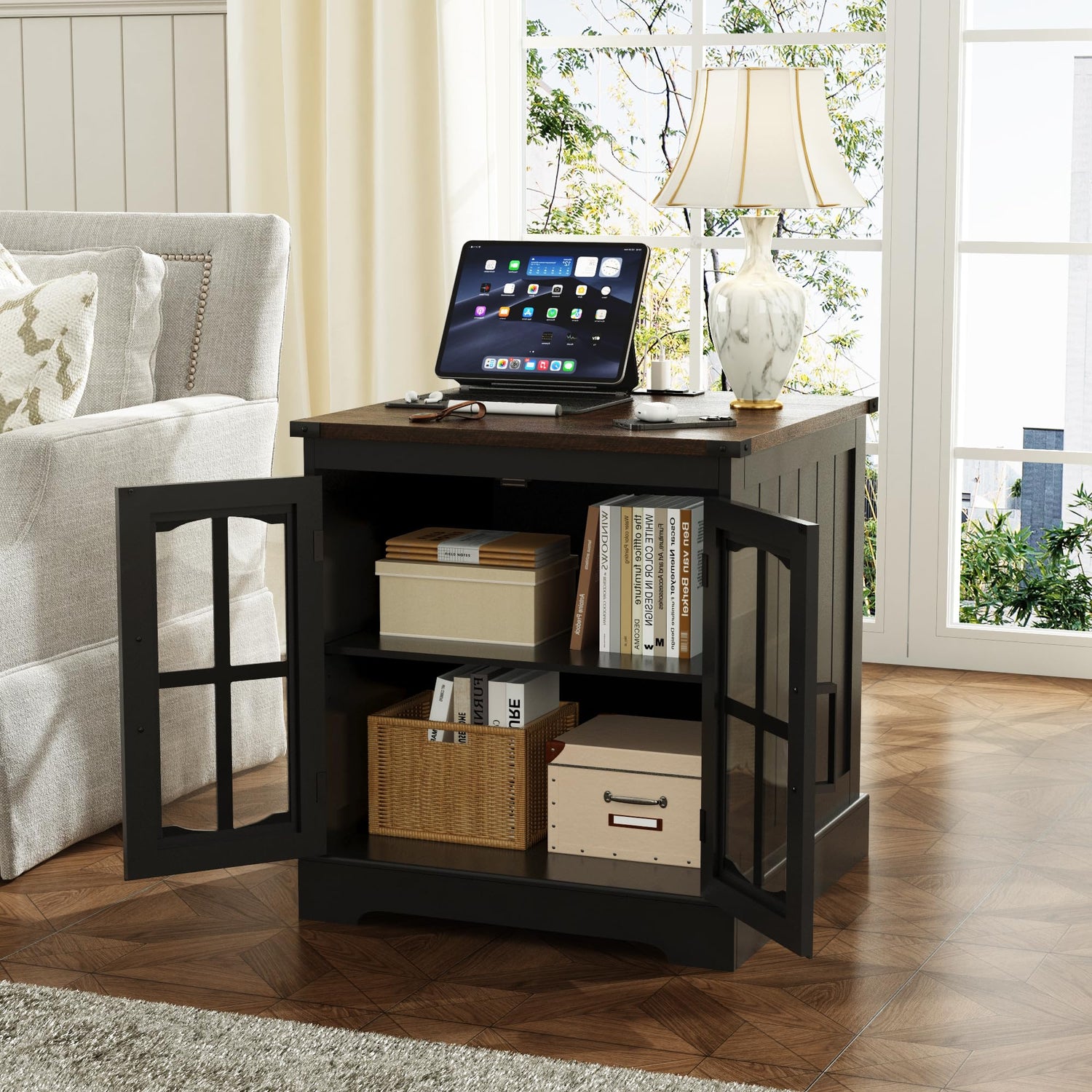 - 【Large Storage Capacity】This side table provides generous storage space, ideal for organizing your daily essentials, storage baskets, and books. Its interior features include adjustable shelves, allowing you to tailor the storage configuration to meet your needs perfectly. Additionally, it makes a stylish choice for the living room, bedroom, or office.