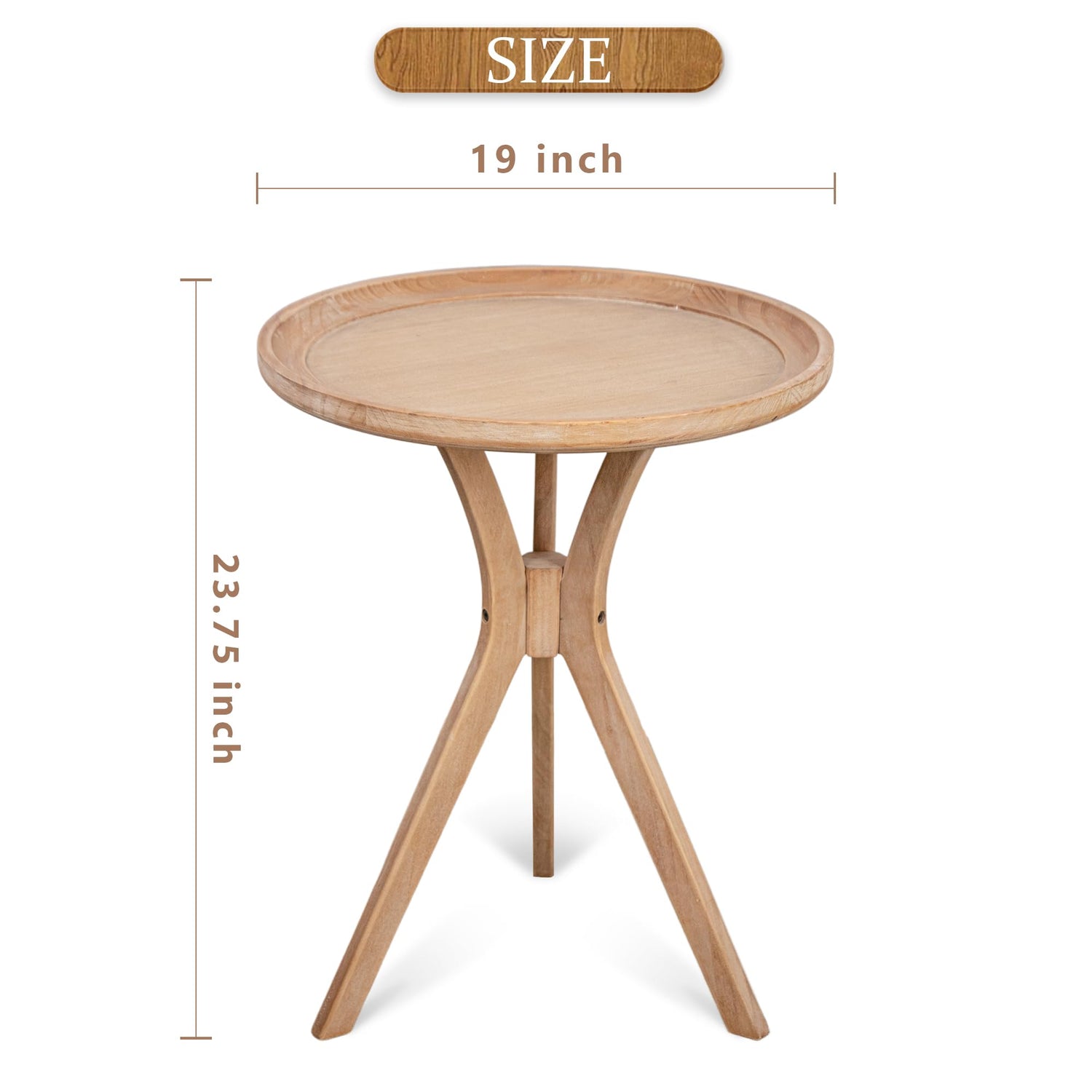 COVLON Farmhouse Side Table, Natural Wood Tray Top Sofa End Table, Soild Wood Rustic Accent Table, Nightstand for Family, Living Room or Dinning