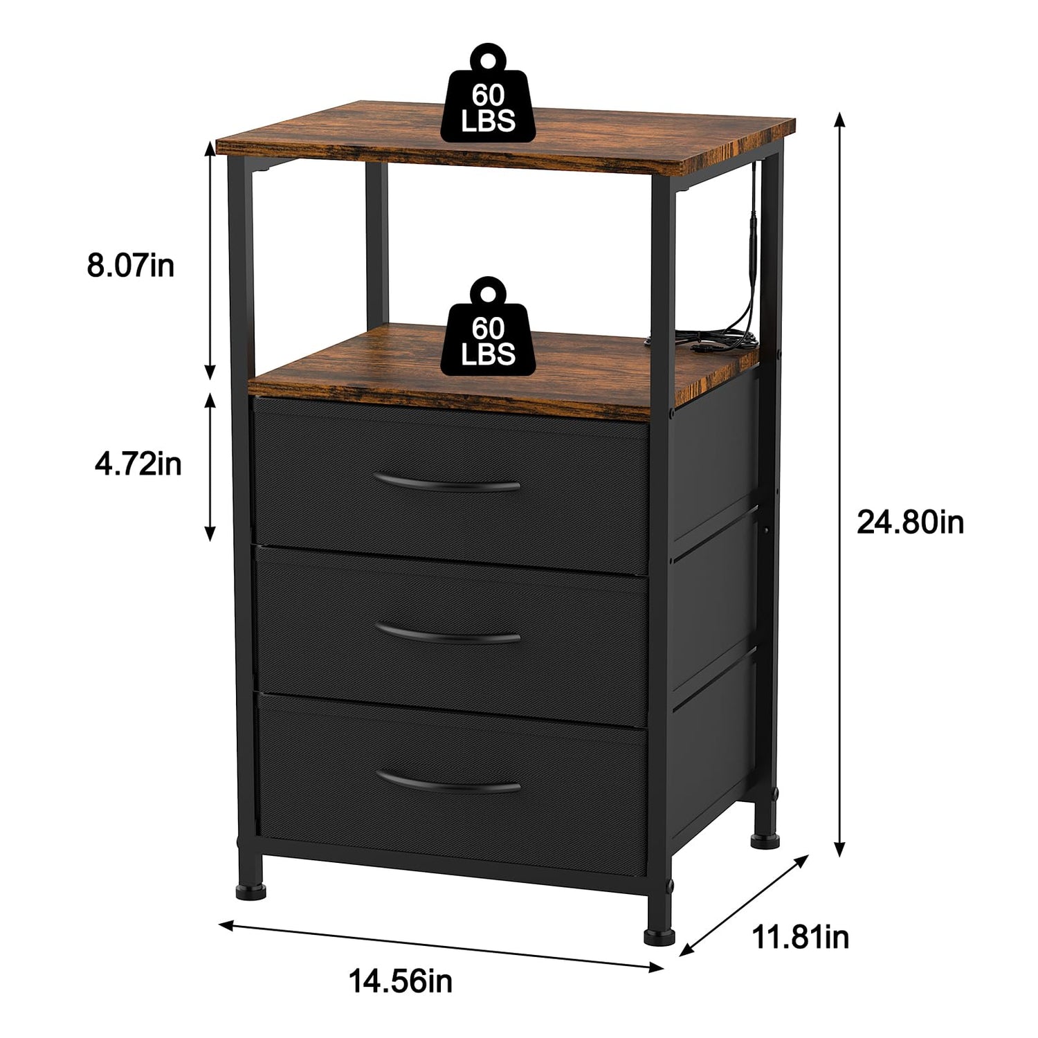 - 💪Durable & Stable: This brown nightstand is made of sturdy metal frame and board, which can hold up to 60 lbs. And its 360 adjustable foot pads ensure stability on uneven ground.