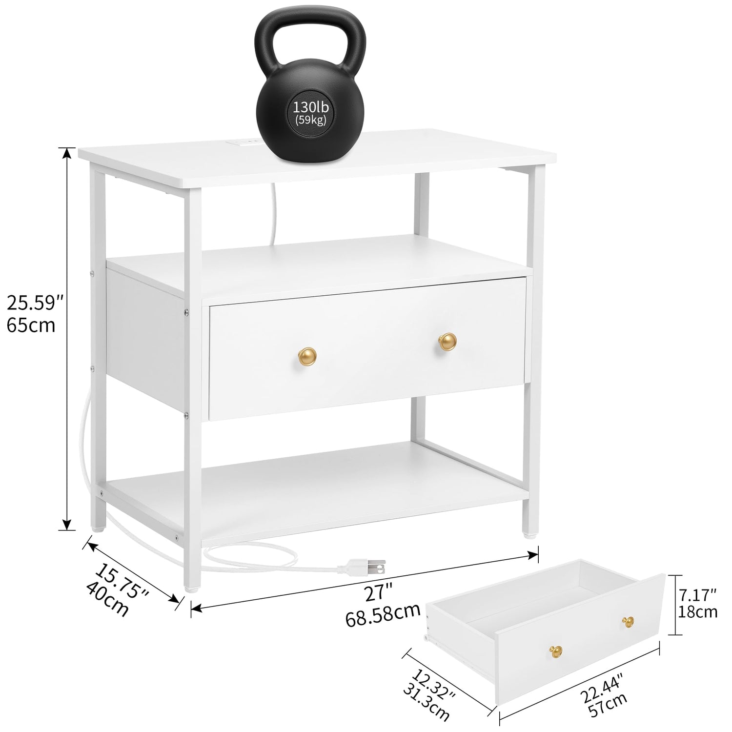 - 【Large storage space】This 27-inch wide bedside cabinet, inclusive of a built-in drawer, ensures generous space to accommodate all your necessities. It features a capacious drawer and an open compartment that together present copious storage opportunities, perfectly suited for holding items like books, periodicals, and electronic devices. The uppermost tier sustains a load-bearing limit of up to 70 pounds, while each individual drawer safely supports up to 20 pounds of content.