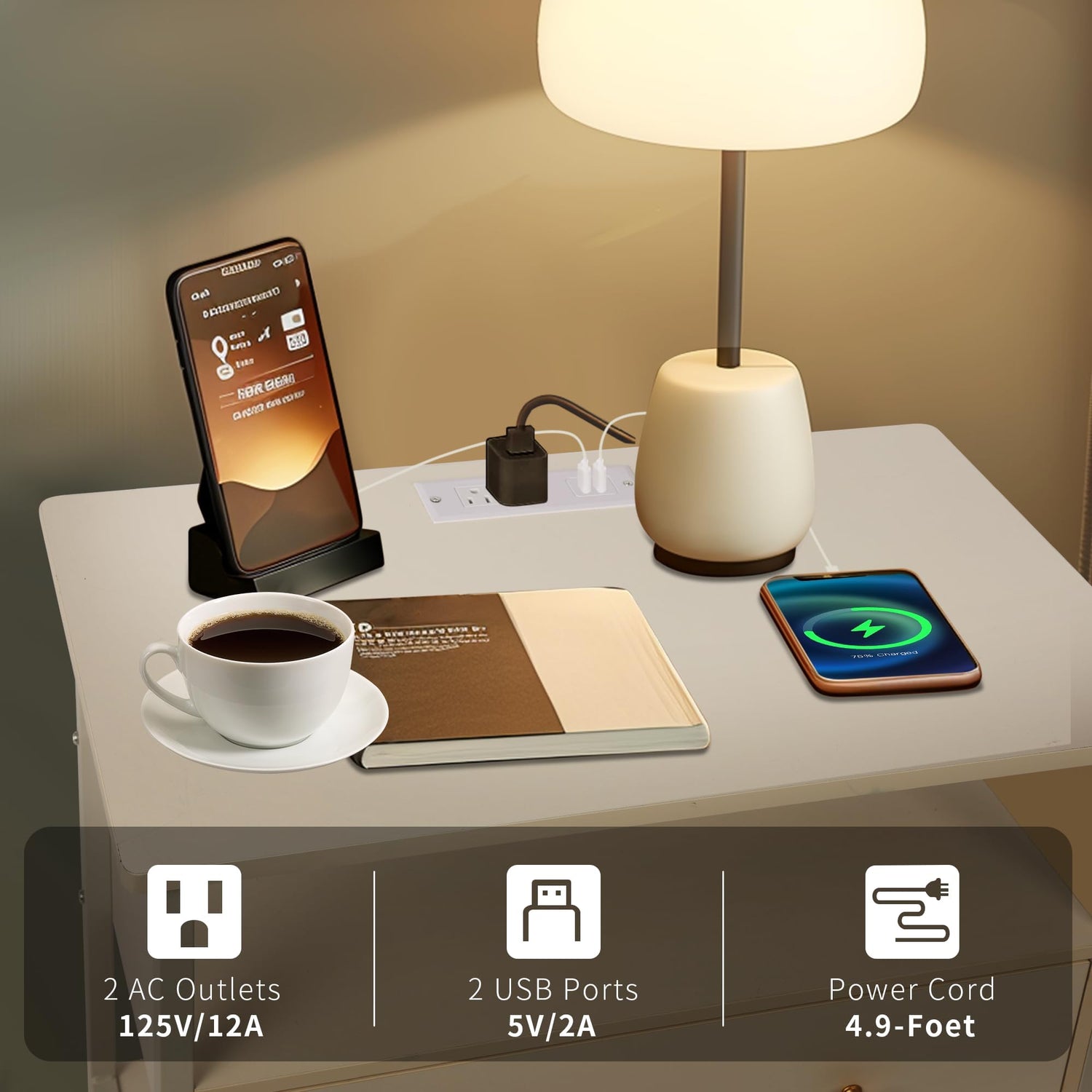 - 【NightStand with LED lights and power outlet】This NightStand features built-in LED lighting with 20 colors, 22 modes,Power Outlet Equipped with 2 standard plug sockets and 2 USB ports,this LED Bedside Table it easy to charge your phone, gaming gear and other office equipment.