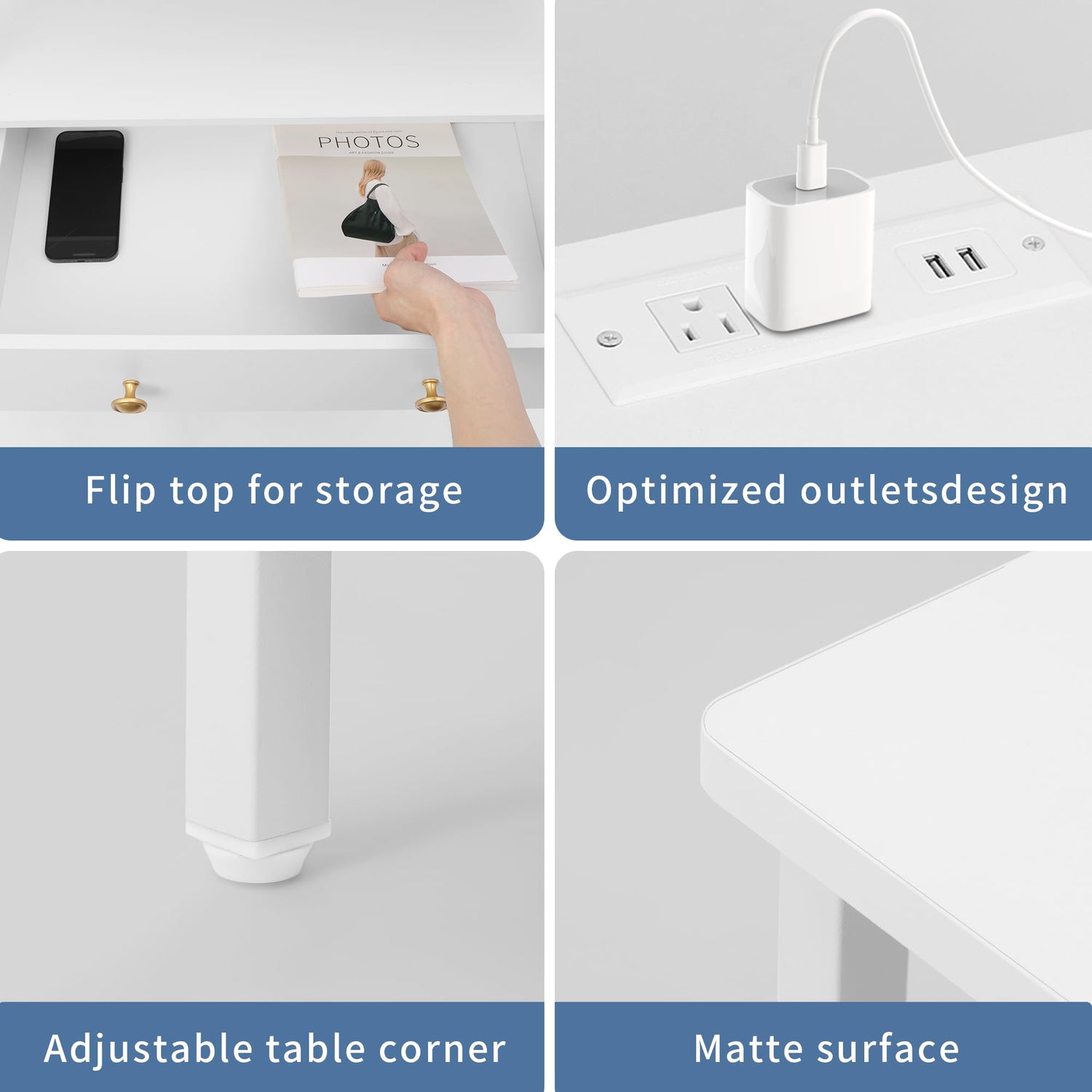 - đ„ăNightstand with Charging StationăThe night stand comes with 2 outlets and 2 USB ports, and a 4.9-foot power cord. You can easily connect and charge electronic devices without needing extra extension cords or looking for available sockets. It provides a convenient charging place for your mobile phones, watches, desk lamps, Bluetooth headsets, and laptops, all within reach.