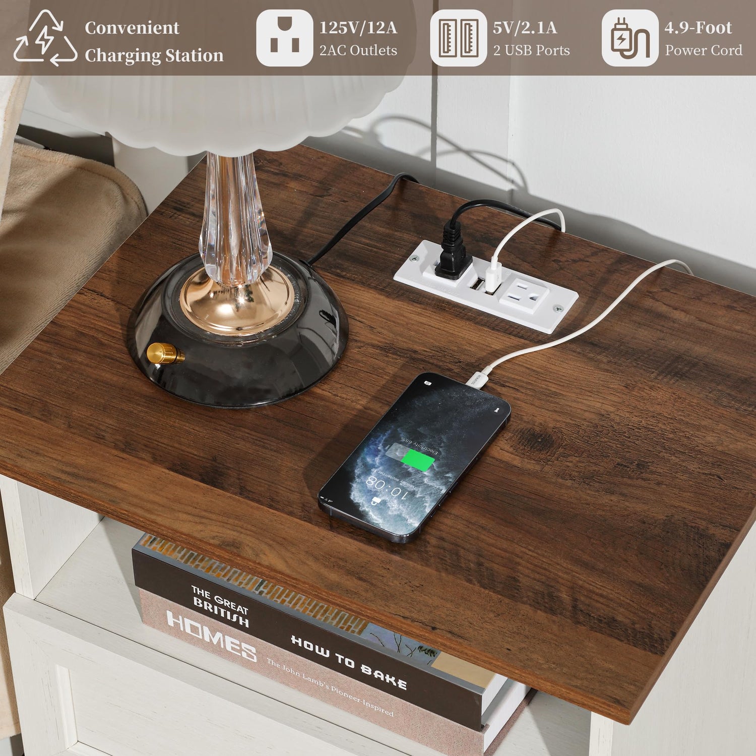 - 【Night Stand with Charging Station】Equipped with 2 AC outlets and 2 USB ports, this nightstand provides ample charging options for your bedtime routine. Simply plug in your phone, turn on your lamp, and enjoy the convenience of effortless charging, making your evenings more comfortable.
