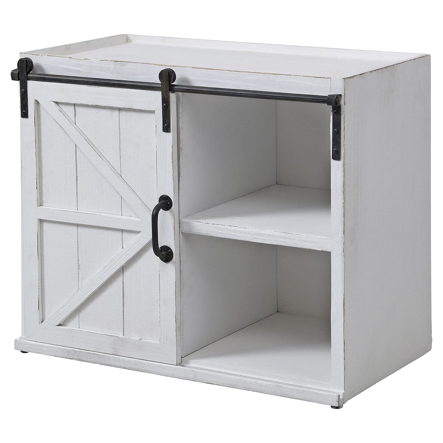 - FASHIONABLE AND FUNCTIONAL - This beautiful end table features a farmhouse-inspired sliding barn door to display favorite accents while storing blankets, games and more out of sight
