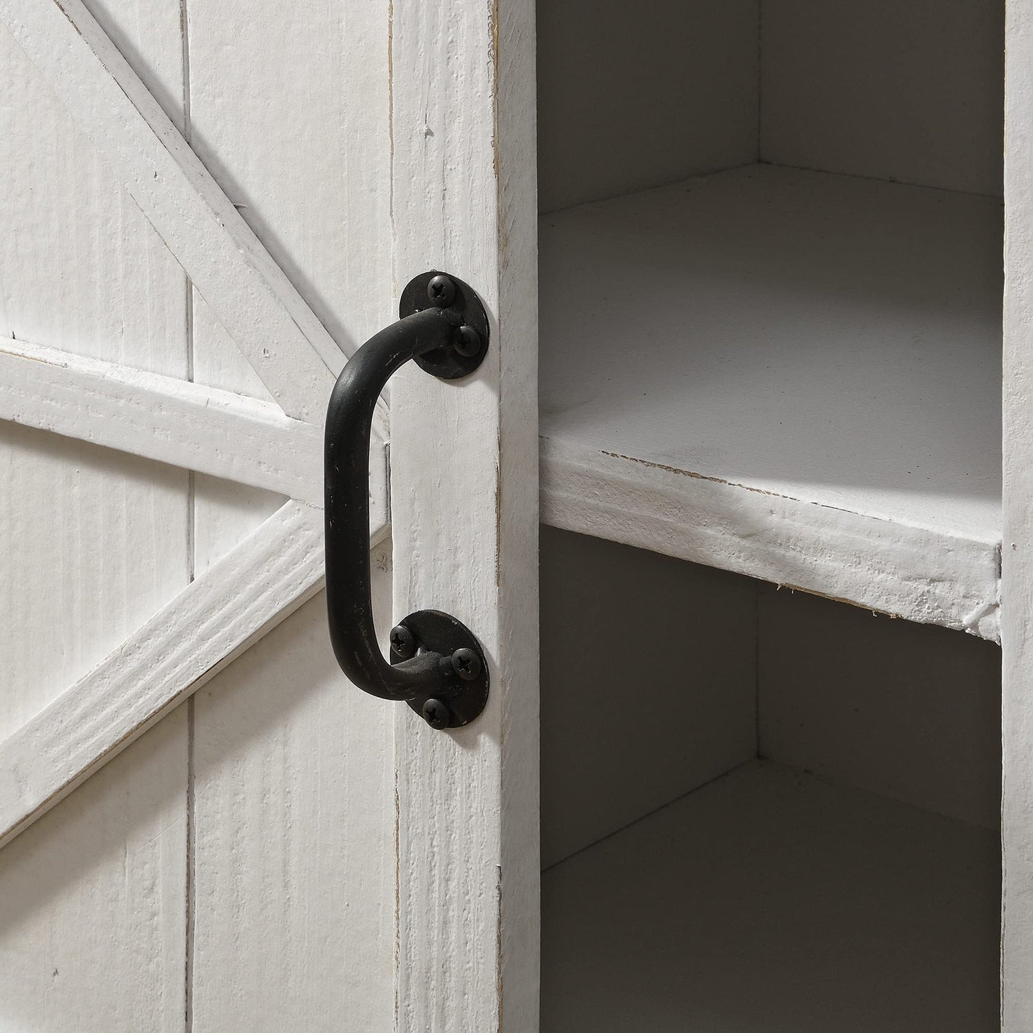- IT'S IN THE DETAILS - Our rectangular FirsTime & Co. White Bolton Farmhouse Barn Door End Table has an antiqued white finish and is made of wood
