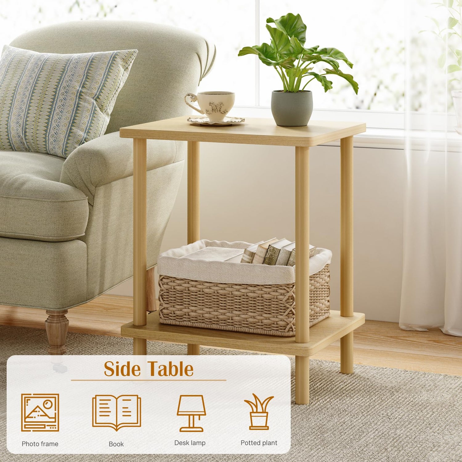Fixwal Side Table, Small Side Table Living Room, Wood End Table, Nightstand Bedside Table, Natural (No-Tool Assembly)