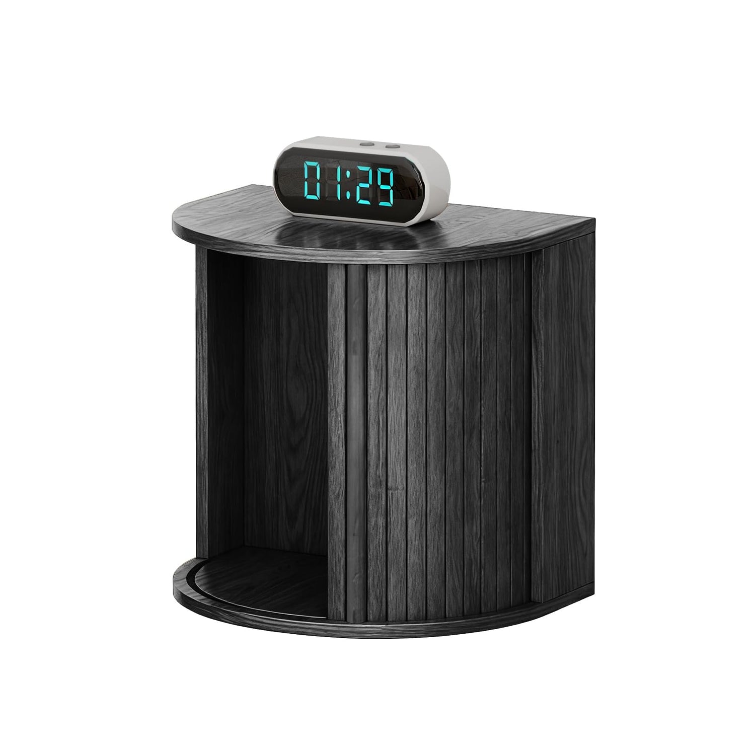 Floating Curved Nightstand Set of 2,Wooden Fluted Wall Mounted Small Bedside Table with Sliding Roller Shutter Door Storage,Suitable for Modern Small Space Bedroom(Floating nightstand-Black-06)