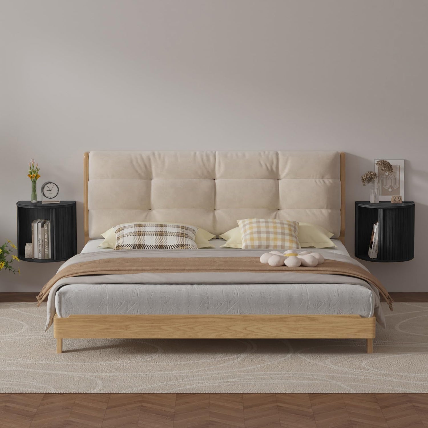 - Double Floating Nightstand - Our floating nightstand set of 2 makes full use of the wall space without taking up the floor space, which is suitable for compact bedrooms. The hidden storage space behind the sliding roller shutter door allows you to easily store daily necessities and keep the room neat and tidy.