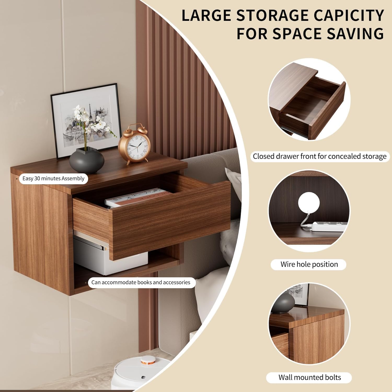 - ✅【Multi-Purpose Floating Nightstand】: Add a touch of elegance to your bedroom with this vintage-inspired walnut/Black/Beech nightstand set. It's also a great option for other rooms, serving as bedside table, floating shelf or cabinet in bedroom, home, office and anywhere else you need it