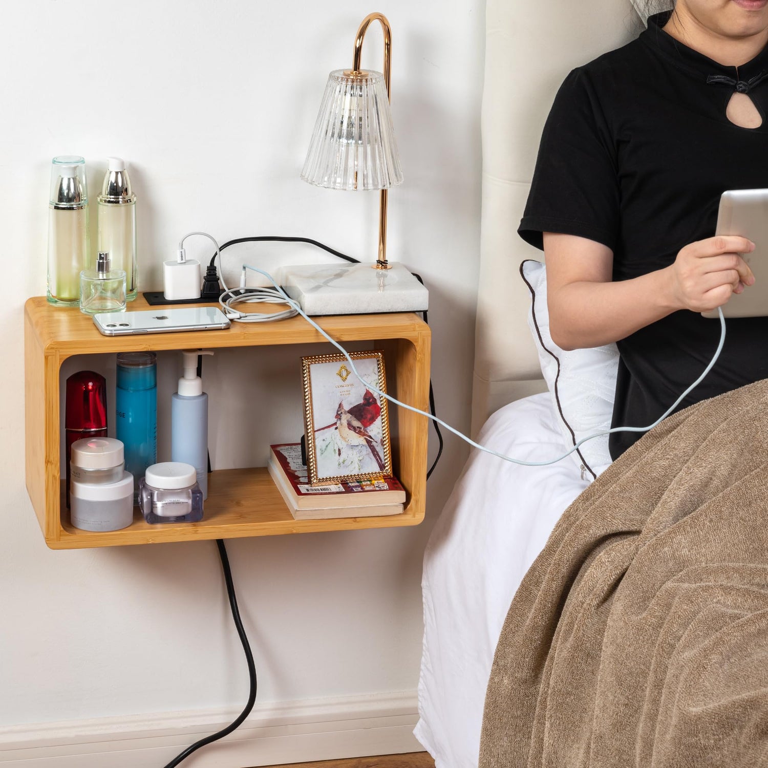 - Space-saving wall-mounted design: Our floating nightstand attaches securely to the wall, providing a functional and stylish solution for small bedrooms or limited space.