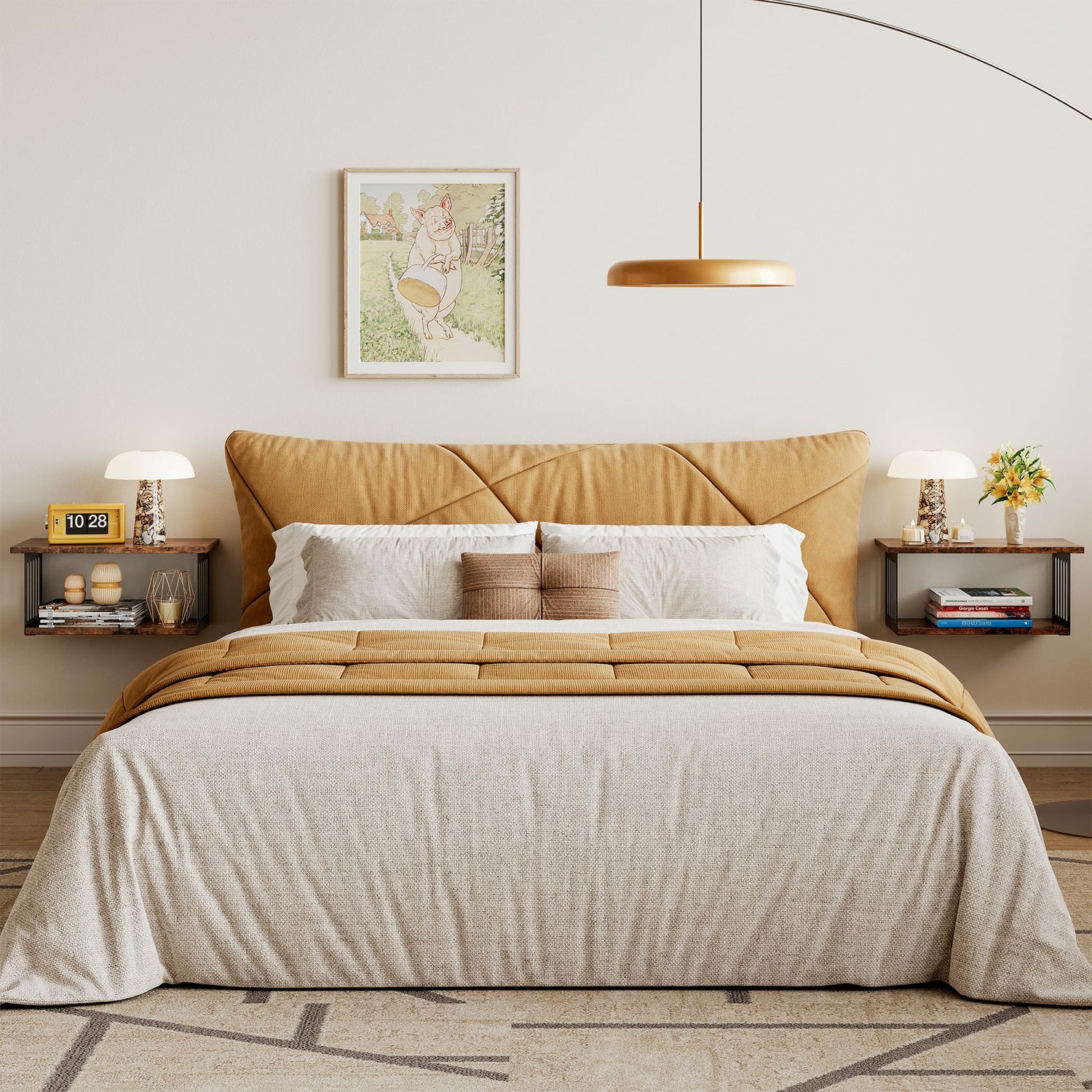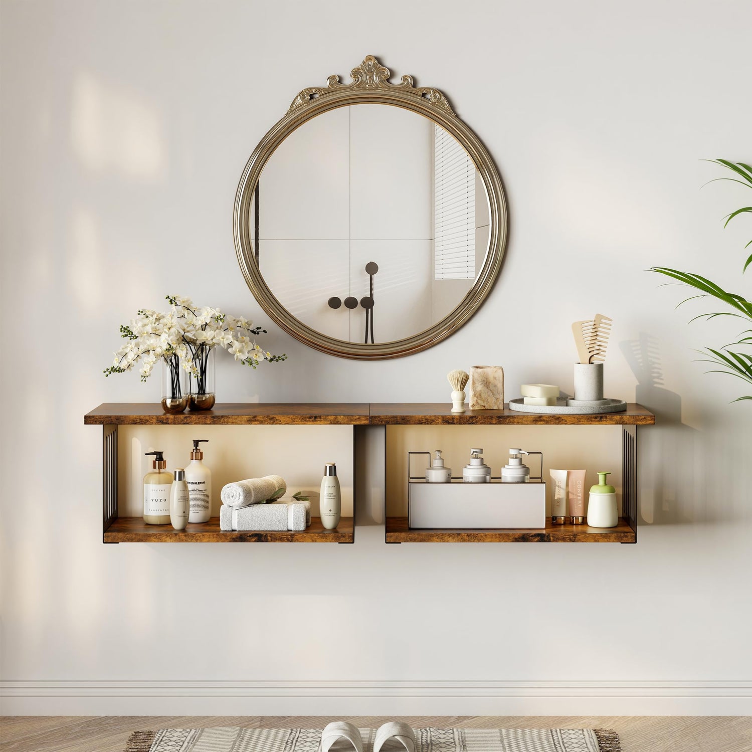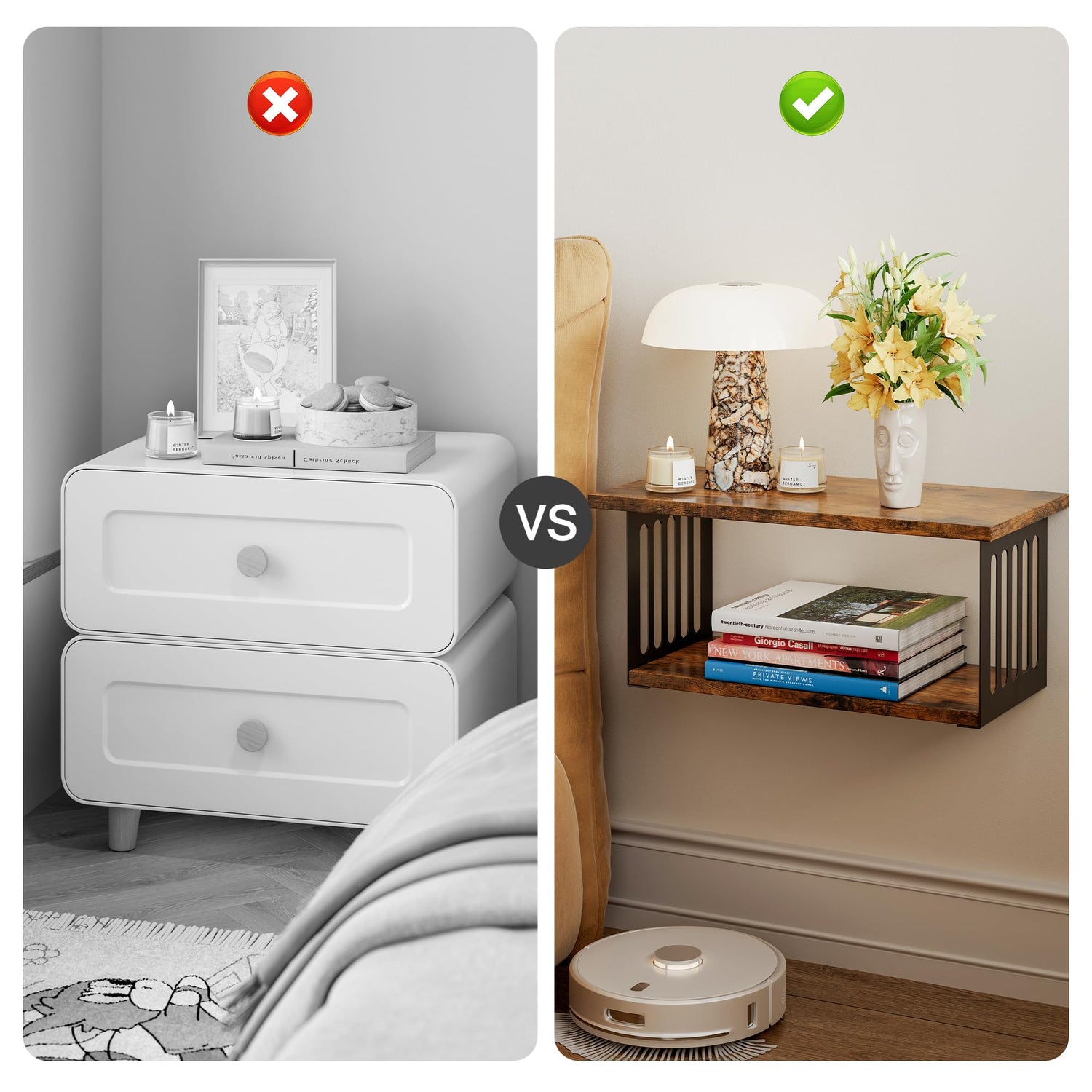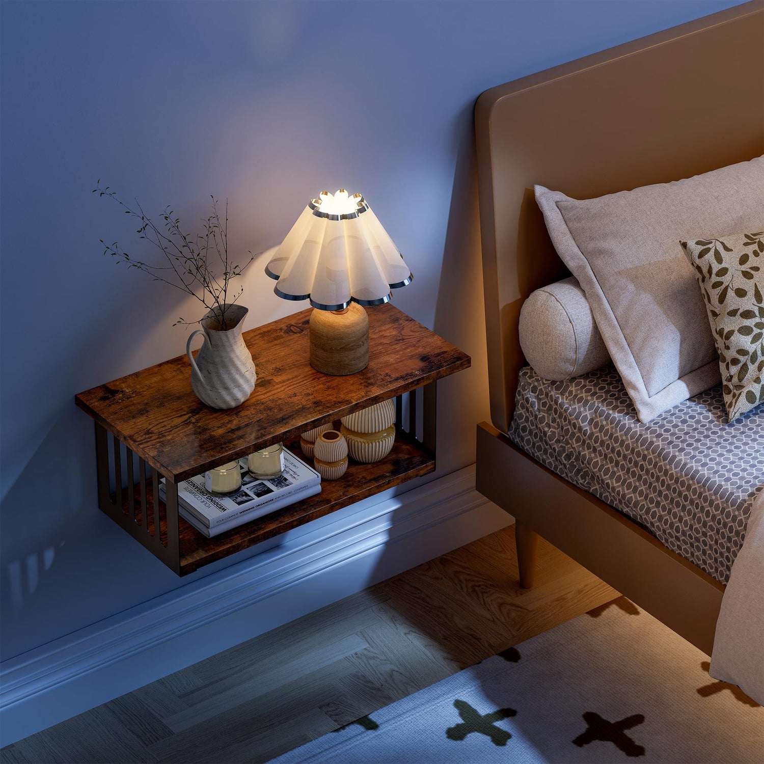 Floating Nightstand Set of 2, 2-Tier Floating Shelves Wall Mounted,Floating Bedside Table Wall Shelf,Display Wall Shelves for Bedroom,Living Room, Bathroom, Kitchen,Rustic Brown
