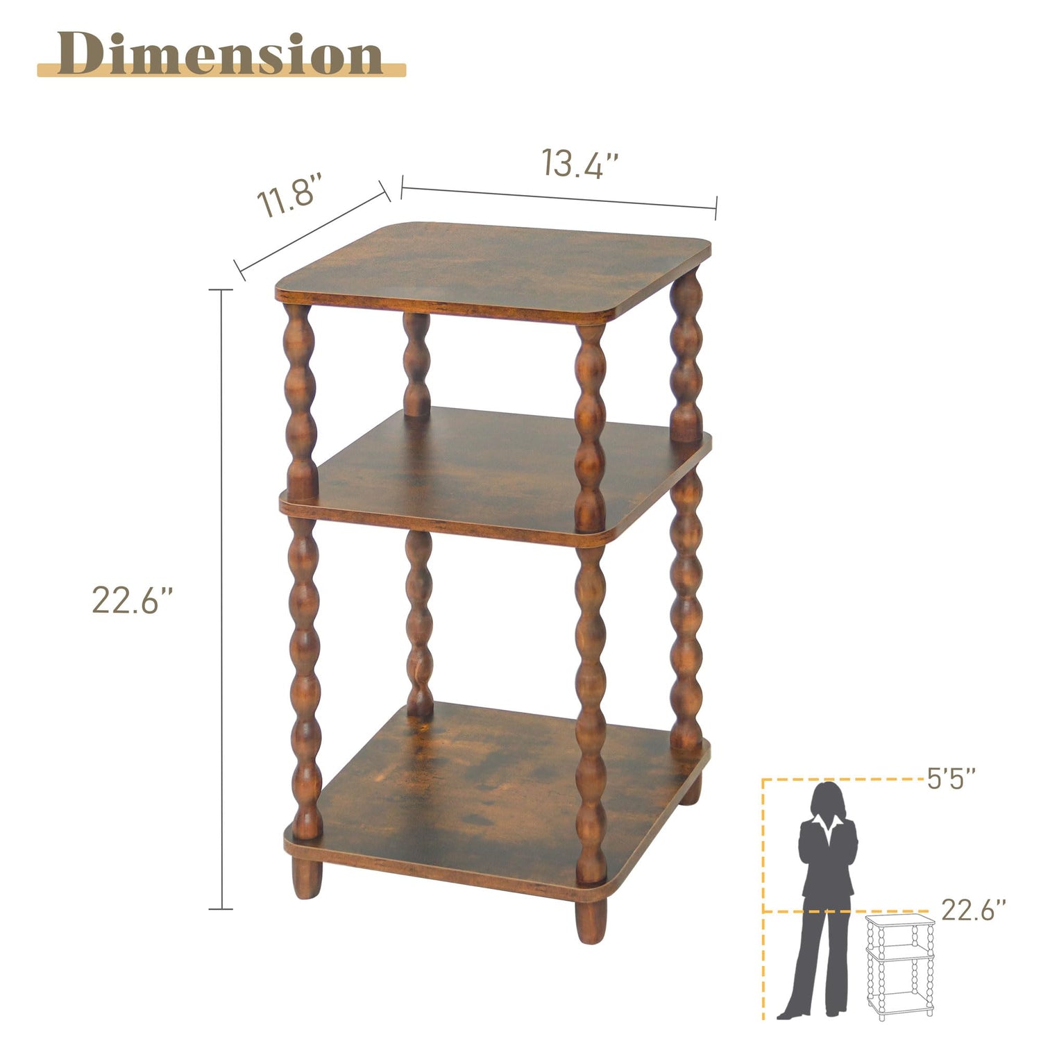 - 3-Tier Storage: This end table features a versatile 3-tier design, offering ample storage: the top tier holds drinks or snacks, the middle shelf displays books or decor, and the bottom level stores bins to keep your space tidy and organized
