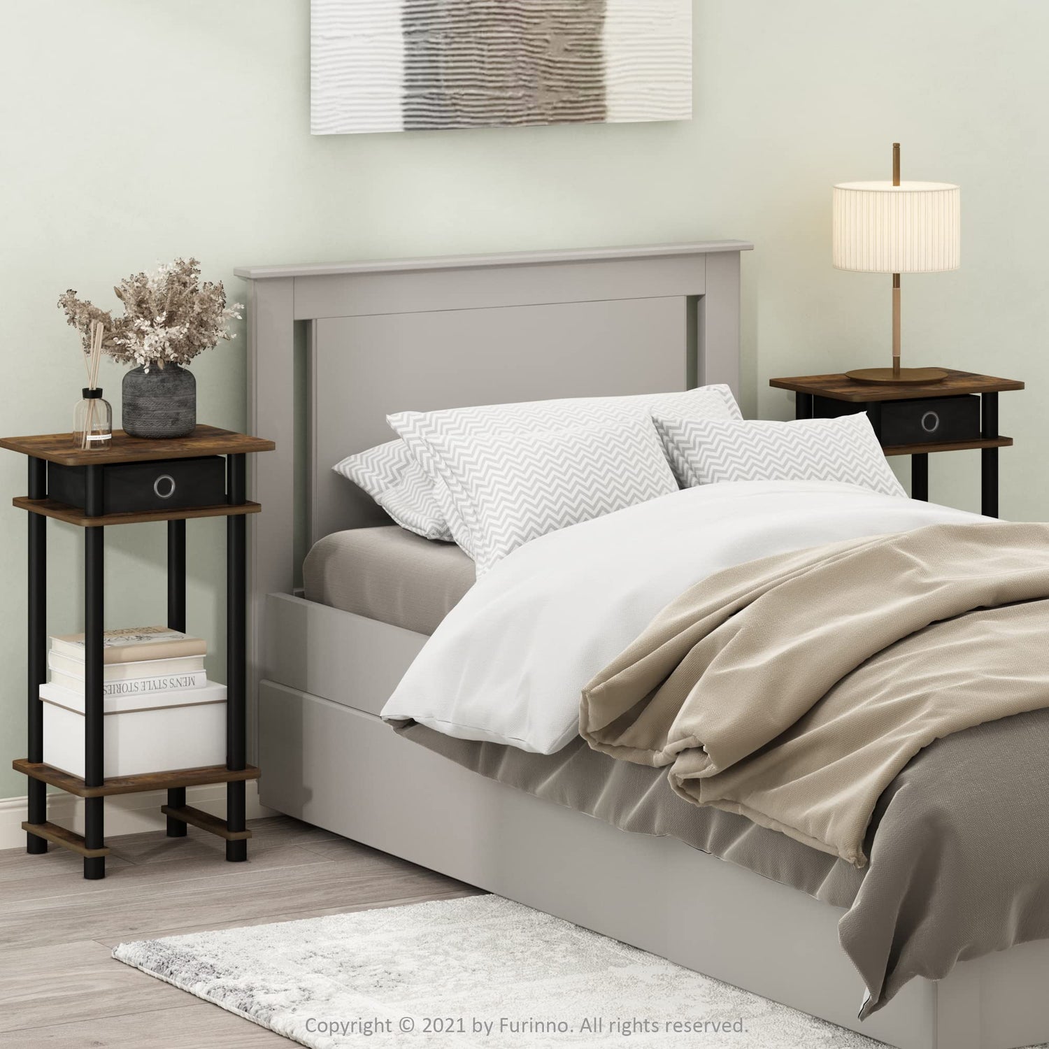 Furinno Turn-N-Tube Tall End Side Night Stand/Bedside Table with Bin Drawer, 2-Pack, Amber Pine/Black/Black