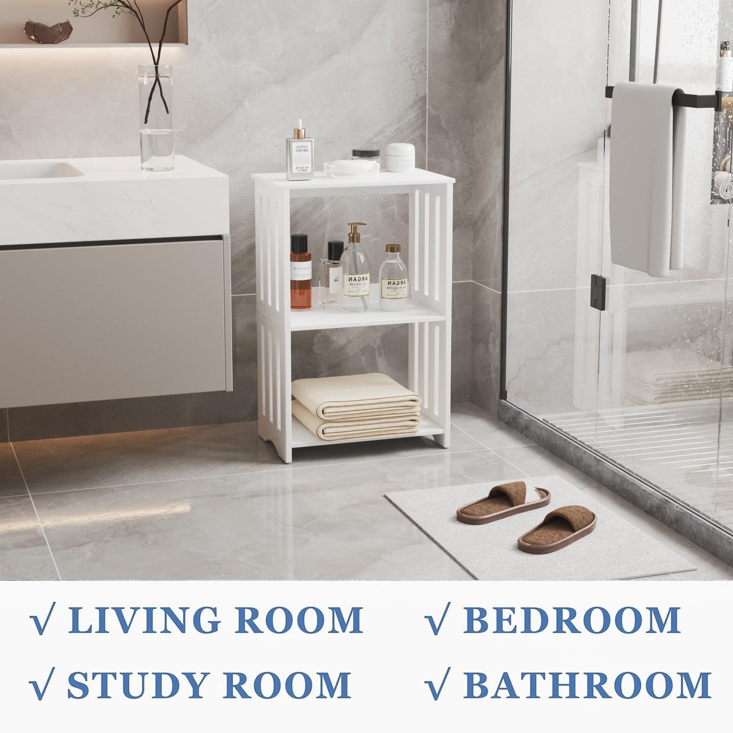 HAYOFAMY 3-Tier End Table Nightstand White, Narrow Side Table with Storage Shelf, Small Bookshelf Bedside Table for Bedroom, Living Room, Office, Bathroom