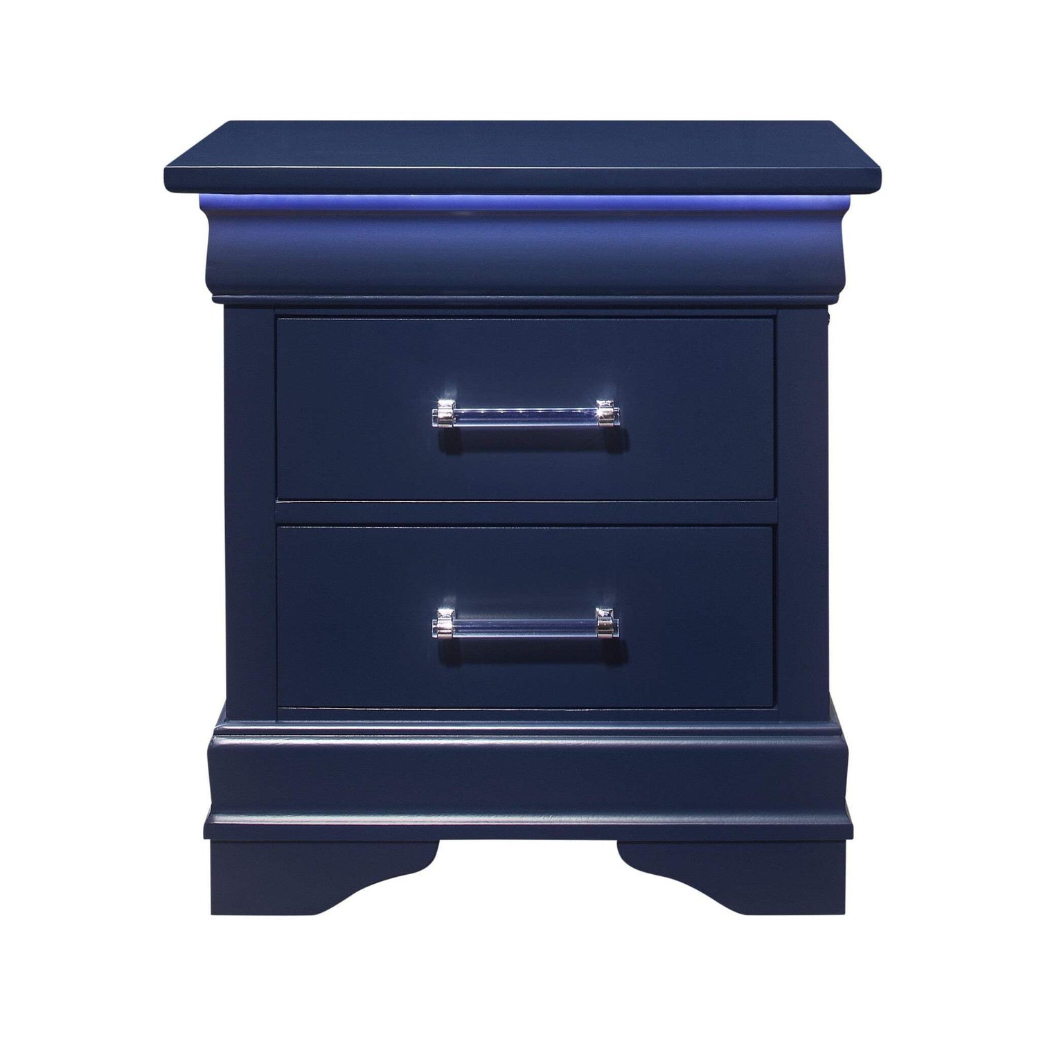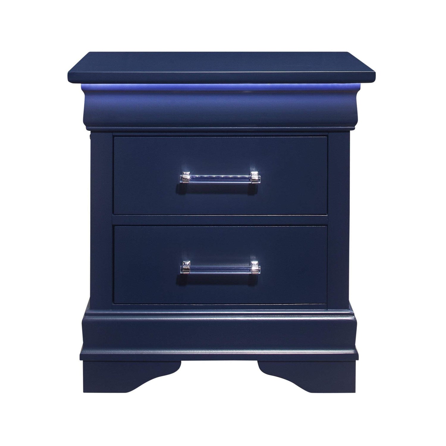 - Add a pop of color and a modern twist on a classic with this Blue 2 Drawer Nightstand with LED Accent