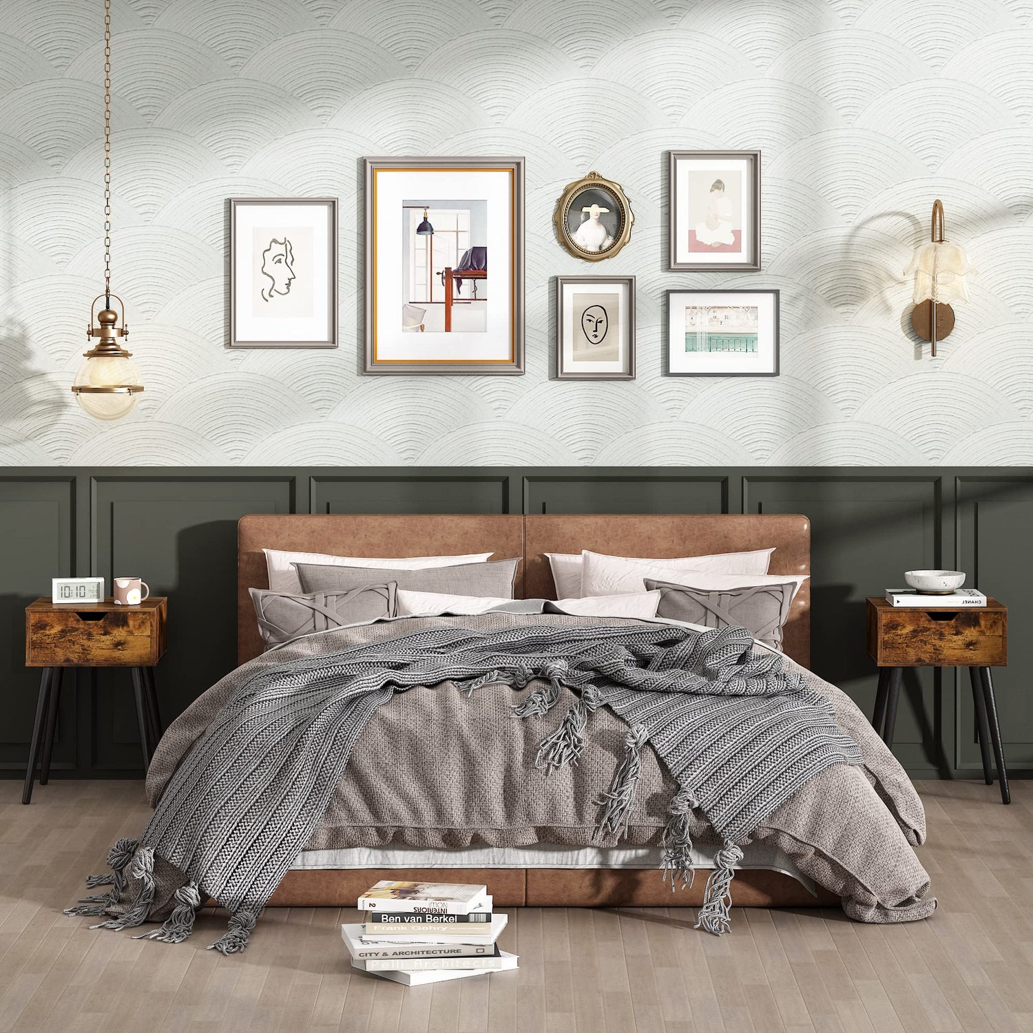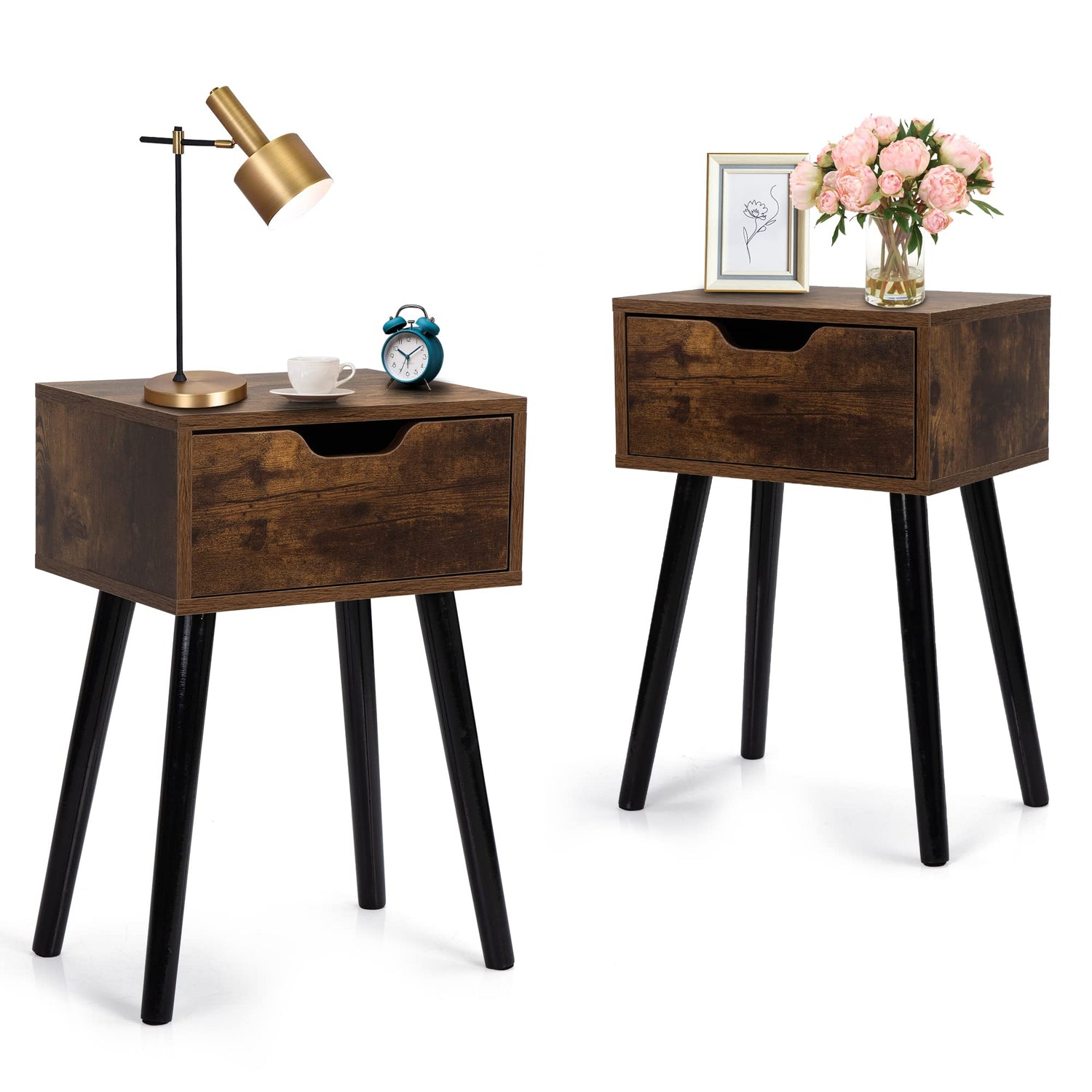 JAXPETY Set of 2 Retro Brown Nightstands with Drawer, Mid-Century Nightstands for Bedroom or Living Room with Solid Wood Legs