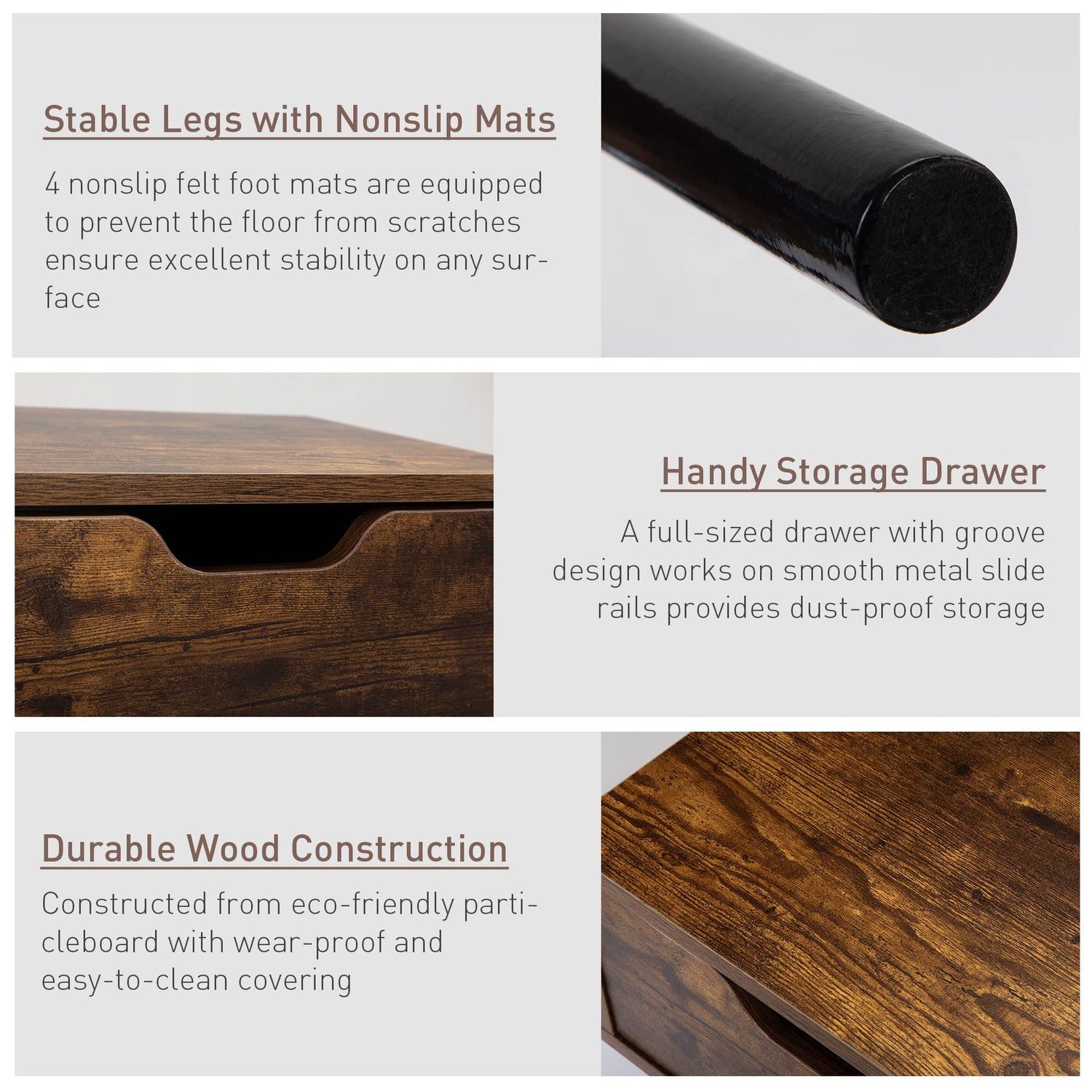- Built to Last: Crafted from particleboard, this table is as sturdy as it is stylish. The top holds up to 66 lbs, while the easy glide drawer supports up to 22 lbs