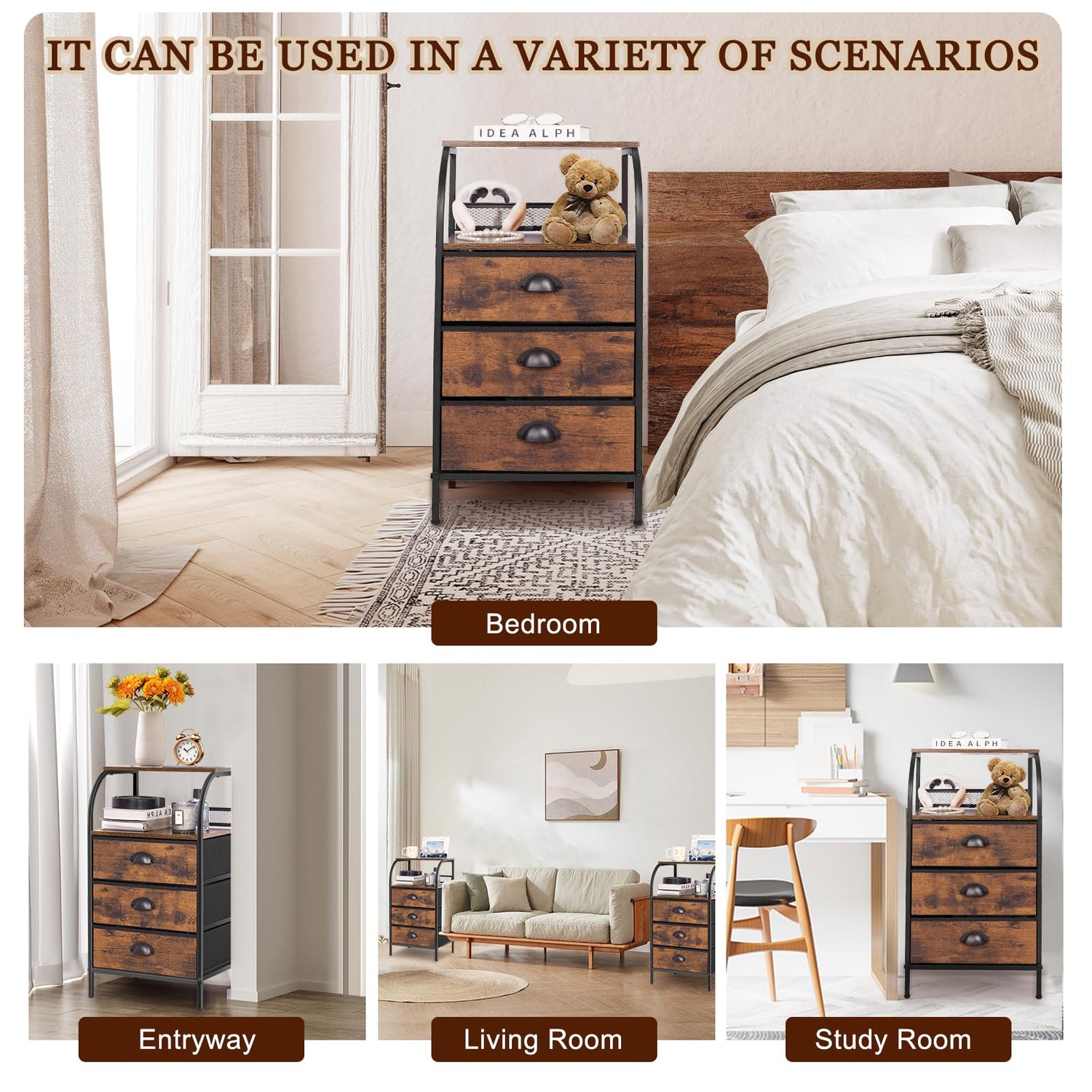 Jixlantuc Nightstand Bedside Table Drawer Organizer Side Table with Fabric Drawers End Tables Living Room Night Stand Chest of Drawers for Bedroom,Hallway, Entryway