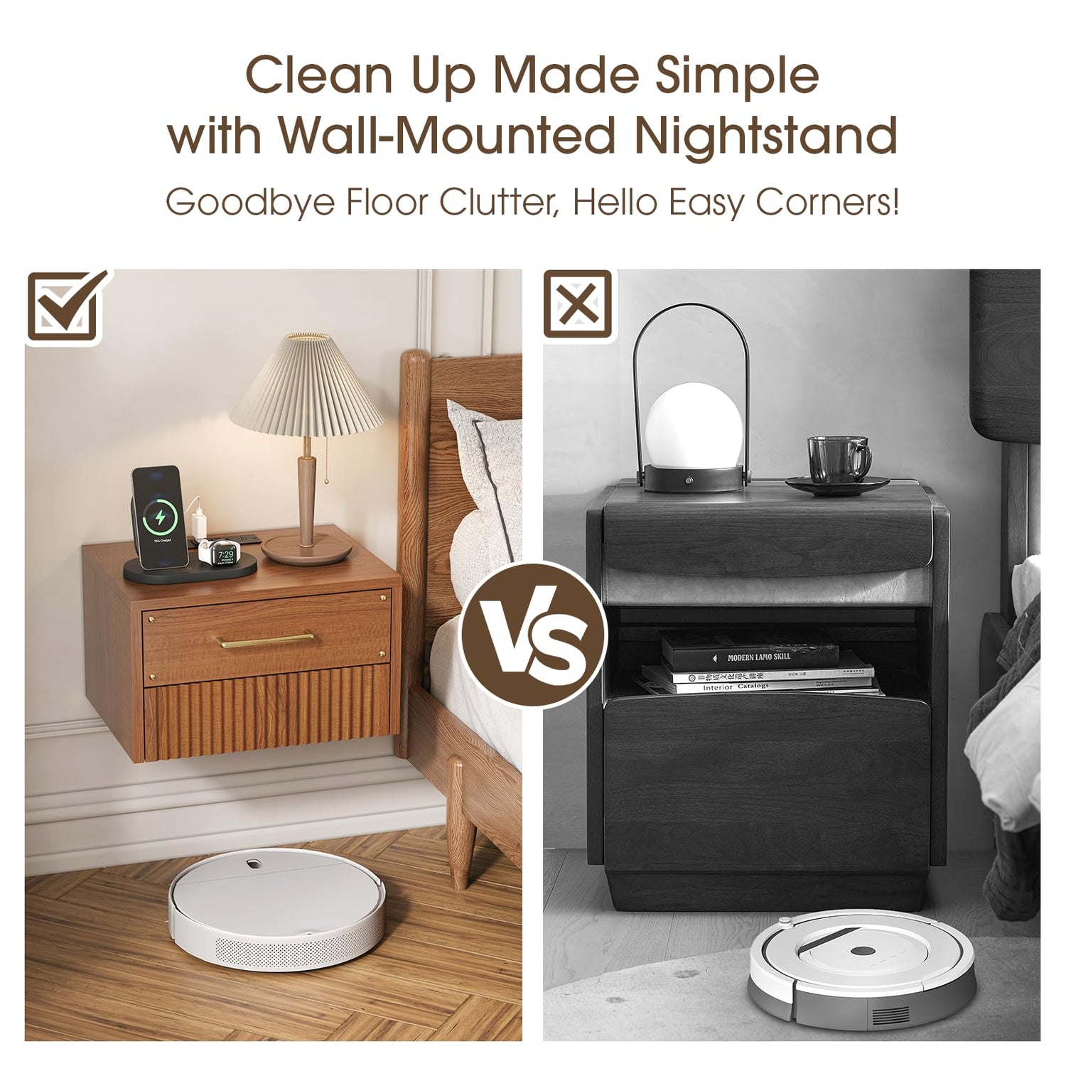 - Storage Space Saving: Say goodbye to floor clutter with this JOINICE wall-mounted nightstand. By freeing up space below, it maximizes storage and keeps your room organized and tidy, making corner clean-up a breeze