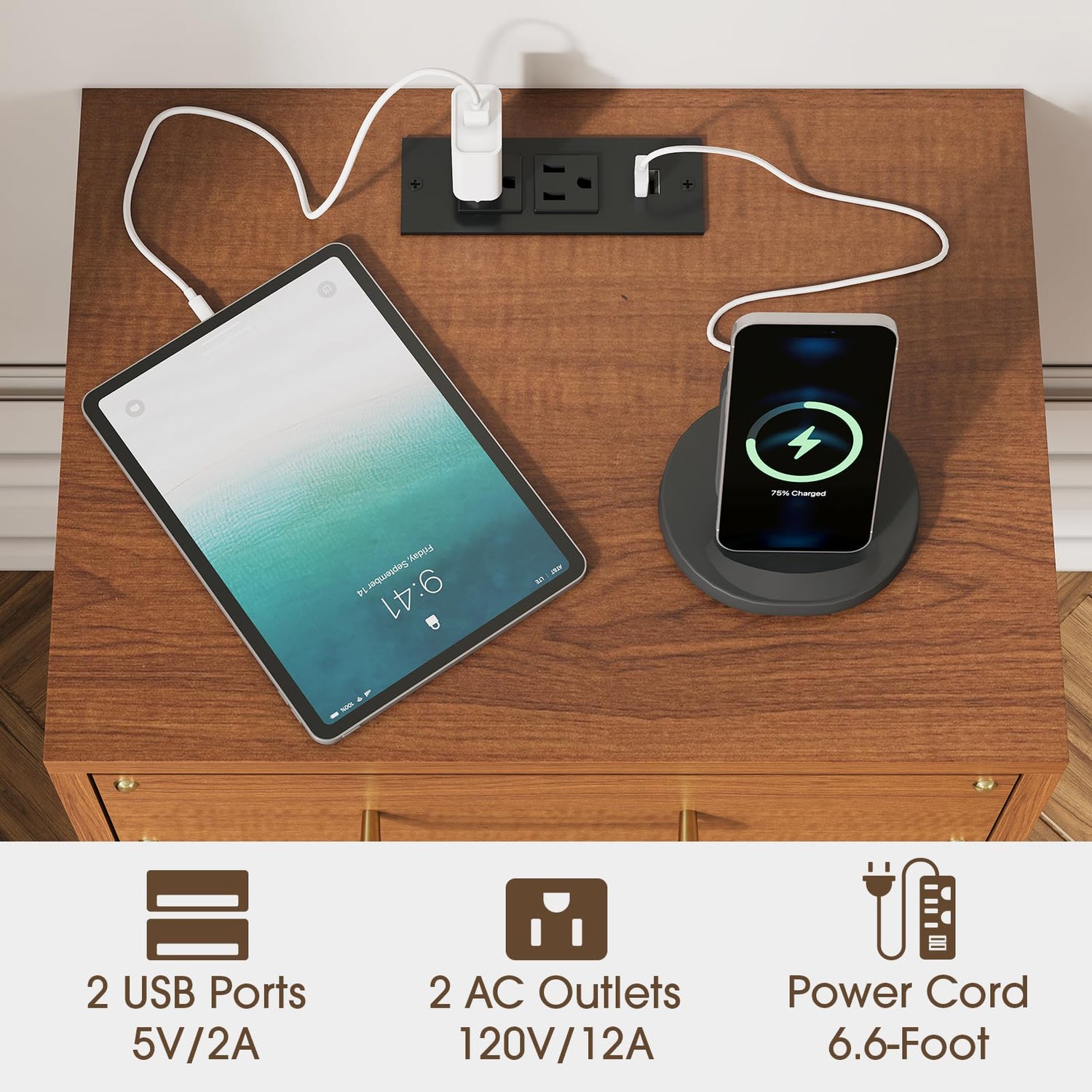 - Built-in Charging Station: This floating nightstand with charging station features 2 AC outlets and 2 USB ports, allowing you to charge up to 4 devices simultaneously. The 6.6ft power cord ensures you have plenty of reach for all your charging needs,everything is within your arm's reach