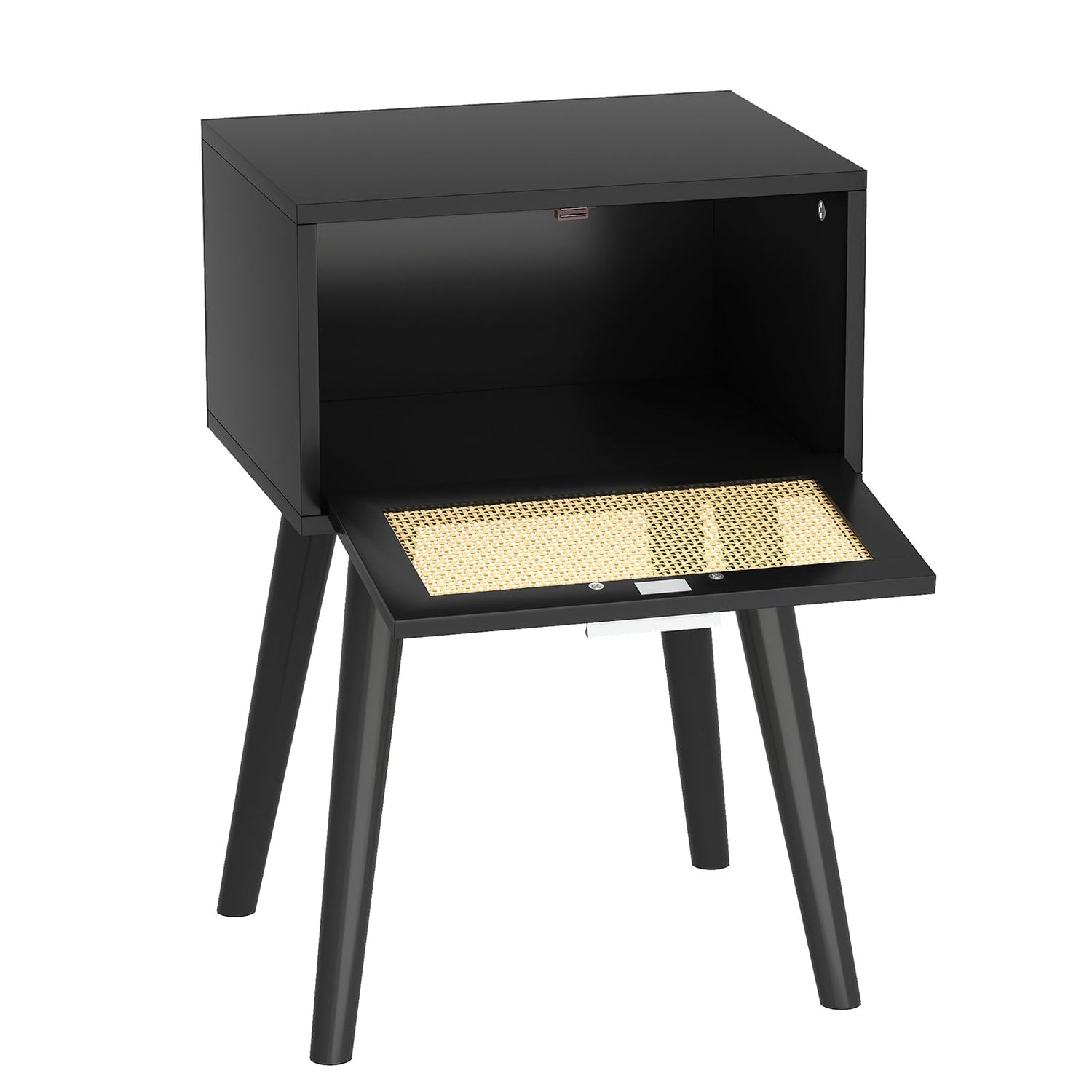 - Sturdy & Stable: The Mid-Century end table is constructed with solid wood legs, Particle board body and rattan door, keep the side table sturdy and stable