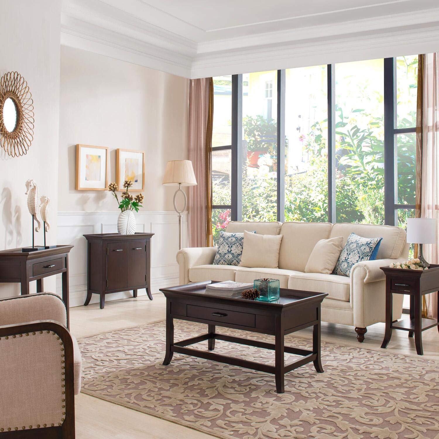 - Flared tray edge top; Perfect next to recliners; Antiqued bronze drawer pull; Assembled Dimensions 13" L x 22" W x 24" H