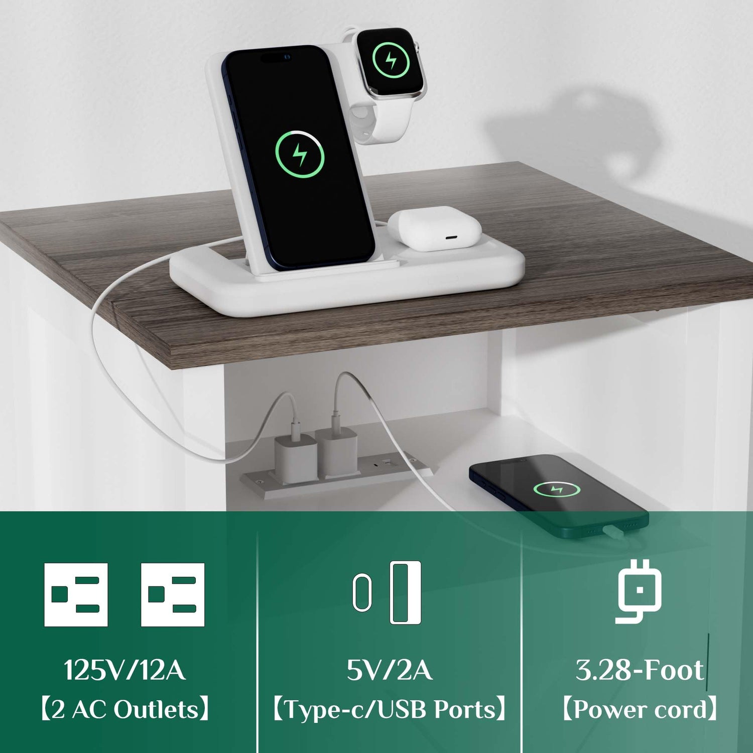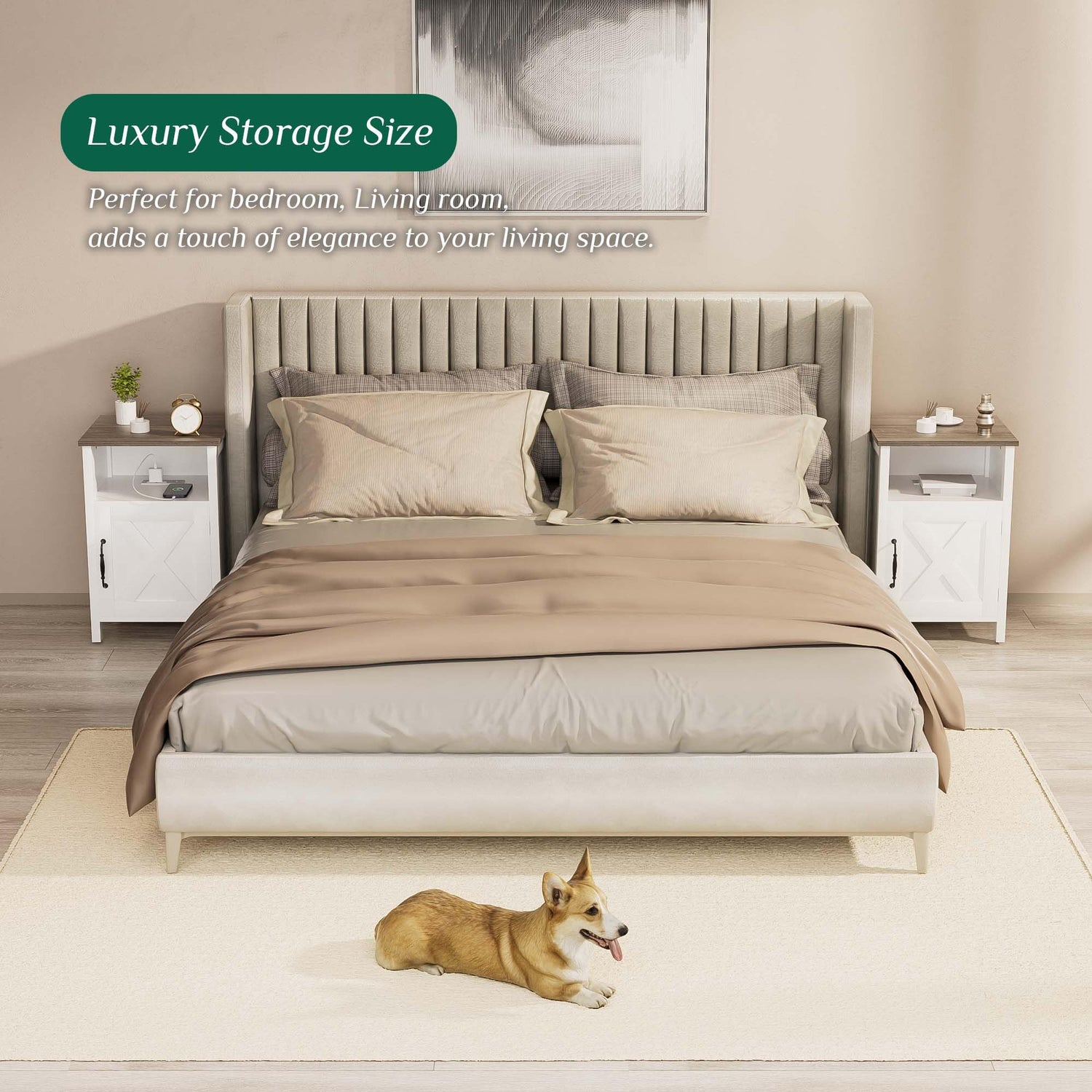 - 【Farmhouse Nightstand Set of 2 with Charger Station】Comes with 2 nightstands, a built-in charging station with 2 AC outlets & 2 USB ports, meeting your everyday charging needs. Also, it's cleverly hidden within the middle shelf, maintaining the tabletop's aesthetic while keeping your storage space organized. Please Note: The nightstand is wide, but the height is 23.6 inches, so if you have a taller bed, please compare the height of your bed before purchasing