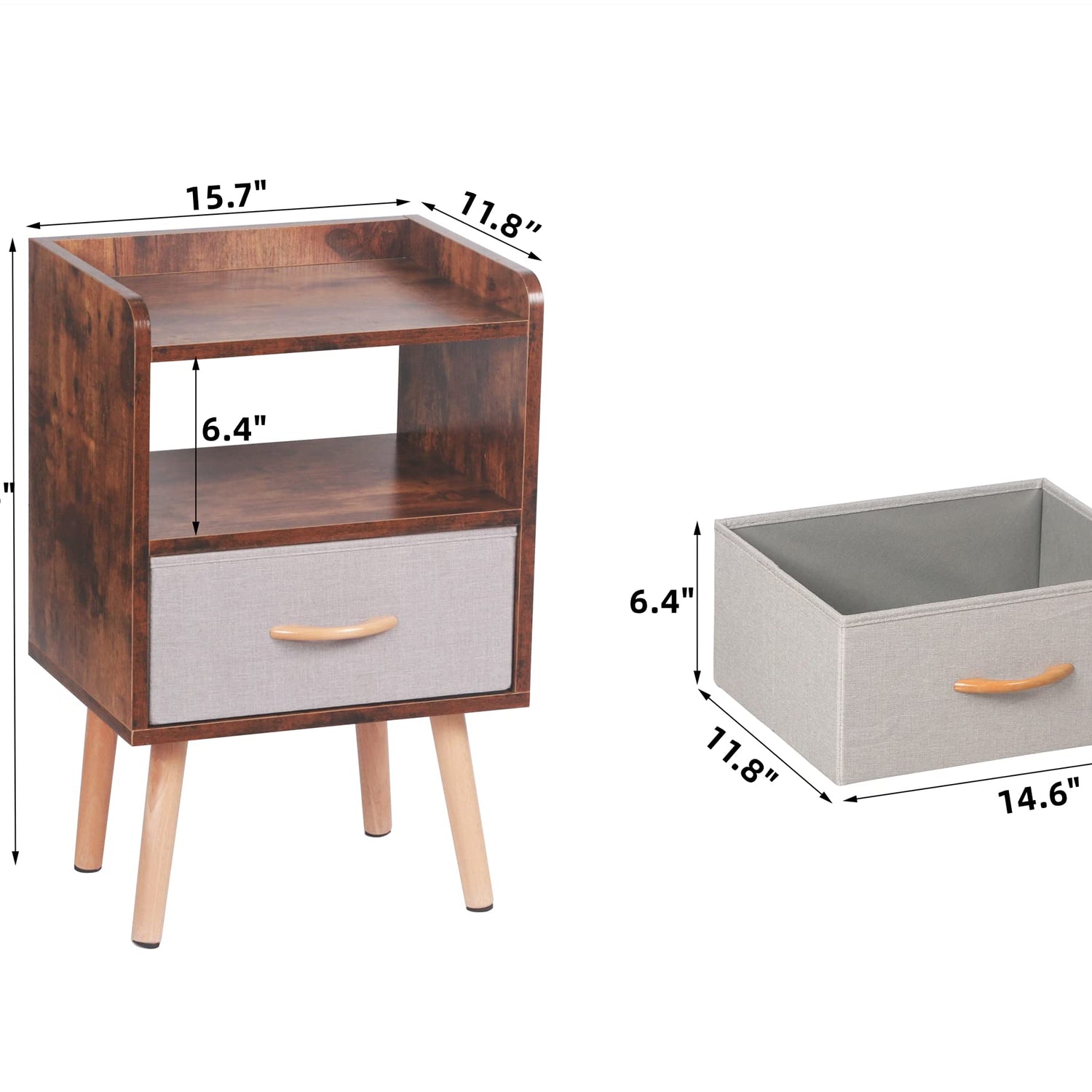 - 【Sturdy Nightstand】Crafted from high-quality MDF boards with scratch-proof surfaces, four legs made from solid beech wood are stably placed in a splayed shape to prevent wobbling. Fabric drawer combine MDF board with breathable fabric. This nightstand features with smooth surface, elegant look, ample storage space and sturdy.
