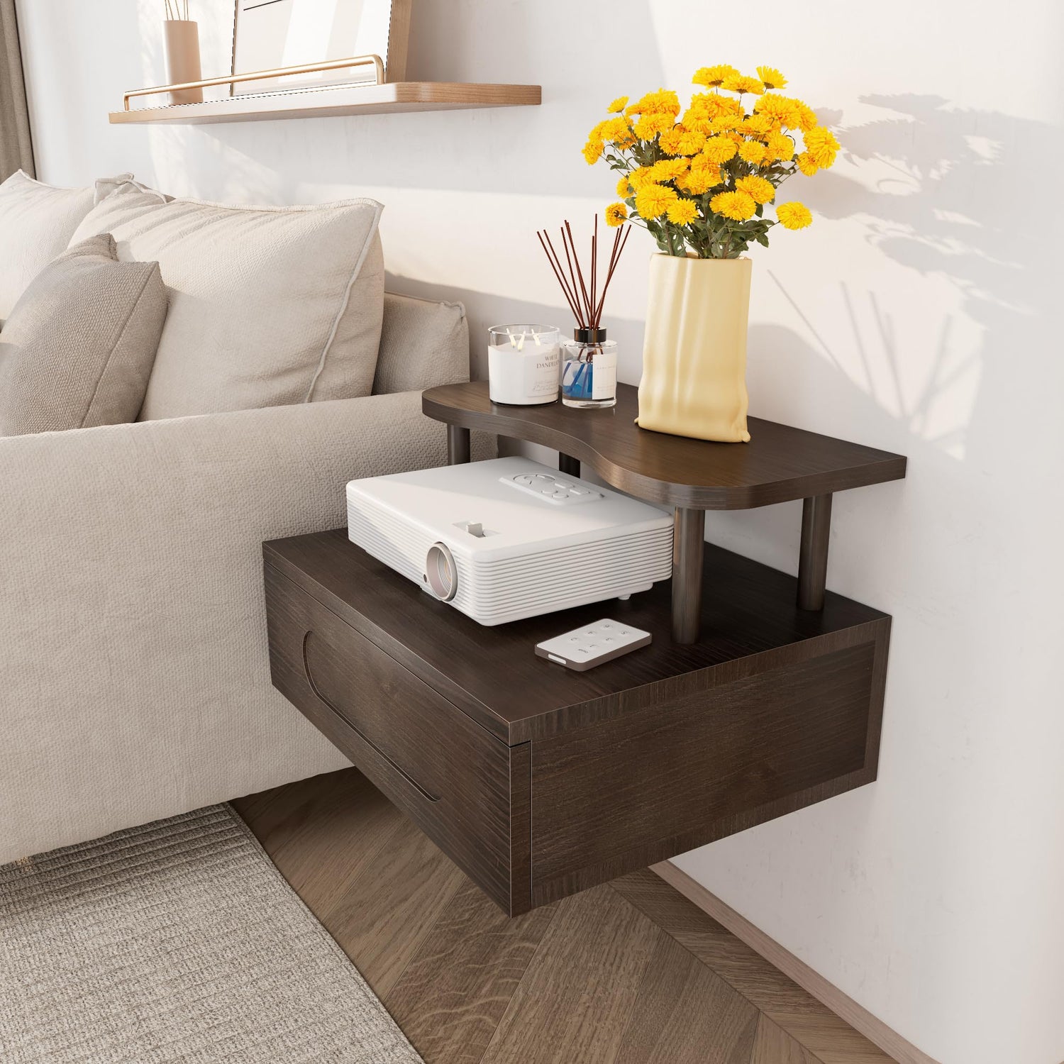 - EASY TO INSTALL: The brown floating nightstand is very easy to install, we will equip you with instructions. You just need to link the shelf and drawer with small columns first. Then just fix them to the wall as you need.
