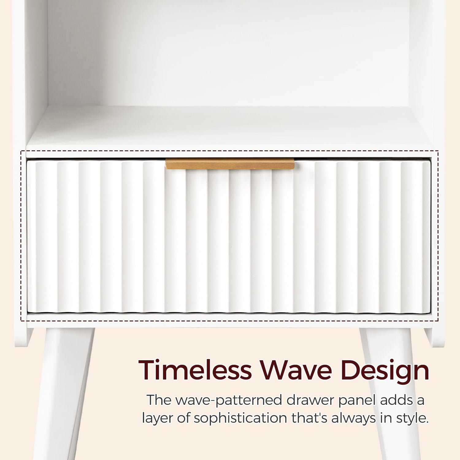 - Fluted Night Stand Vibe:The fluted nightstand's classic white finish is complemented by a gold handle, simple yet modern. The wave-patterned drawer panel adds depth to the space, suitable for various small spaces like bedrooms and living rooms, catching eyes as a side table or end table throughout the home, adding elegance to home life