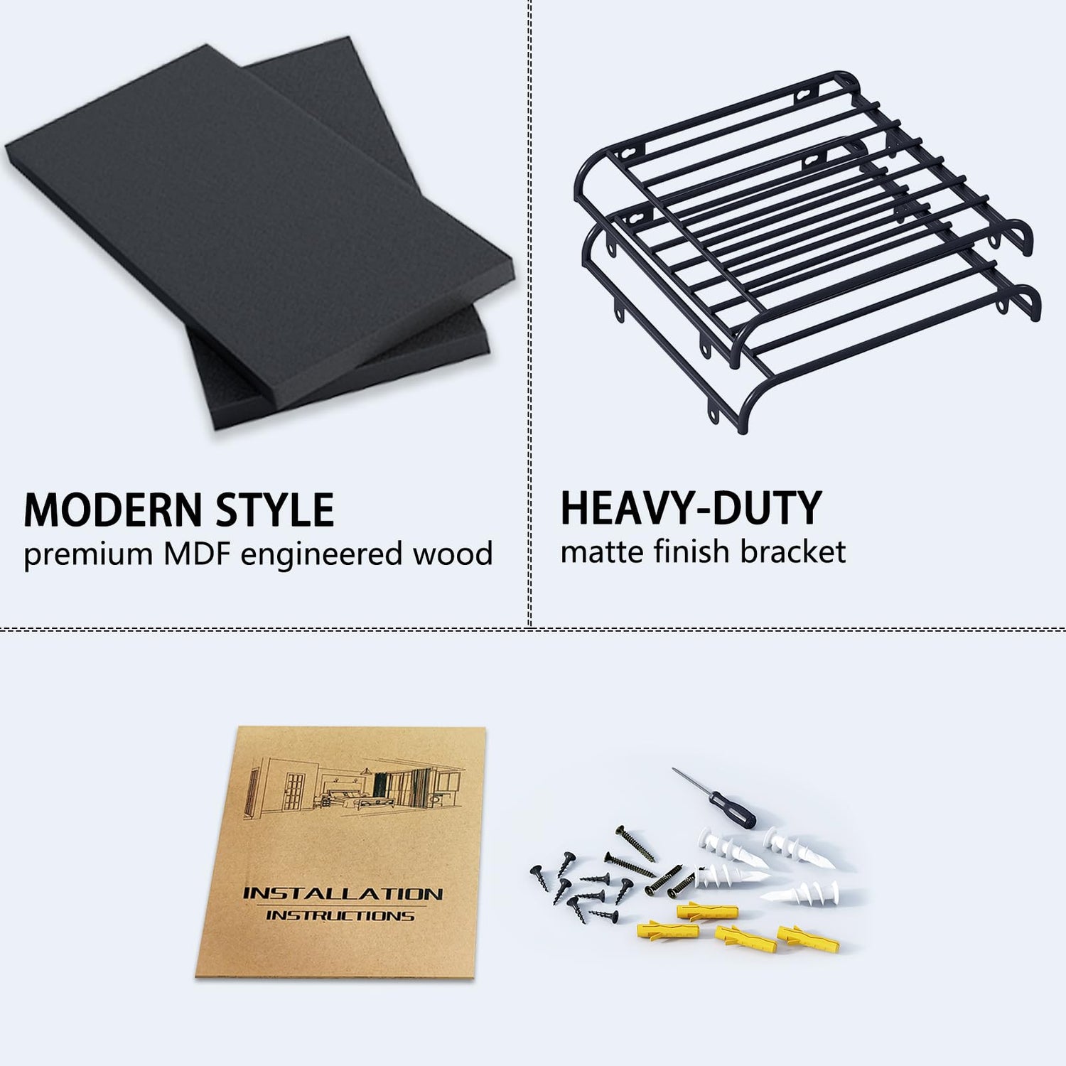 MXCSE Floating Nightstand Shelves, Modern Night Stand for Bedroom, Wood Floating Shelf for Wall, Nightstand Bedside Table, Mid Century Wall Shelves for Living Room, Bedroom (2, Black)