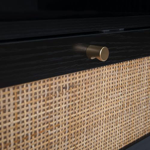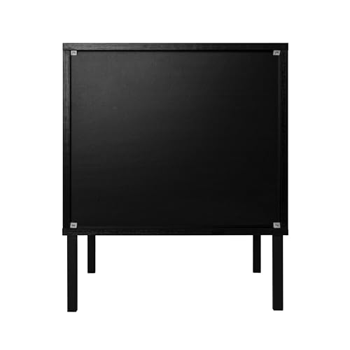 Natural Rattan Nightstands Set of 2, Accent End Table, Boho Bedside Table with 1 Hand Made Decorated Door for Living Room, Bedroom, Black
