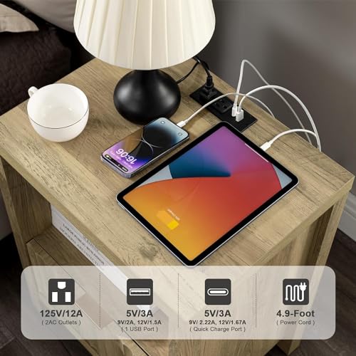 - Convenient Nightstand with Charging Station: Maintain the power of your essential devices and have them at your fingertips with our practical coffee table equipped with a built-in charging station. The bed side table with 2 USB ports and 2 outlets, it allows you to effortlessly charge multiple devices simultaneously. The 4.9ft power cord provides the flexibility to position the charging nightstand wherever you desire in your bedroom or living room.