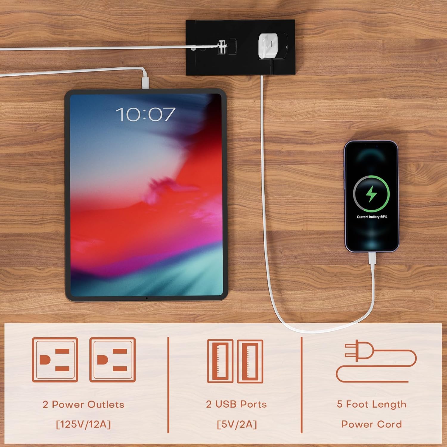 - ✅【 Built-in Charging 】Charge your devices conveniently with 2x integrated AC outlets and 2x USB charging ports. Keep your phone, tablet, or other gadgets powered within reach while you sleep or relax. The 5-foot long power cord ensures the nightstand can be placed virtually anywhere.