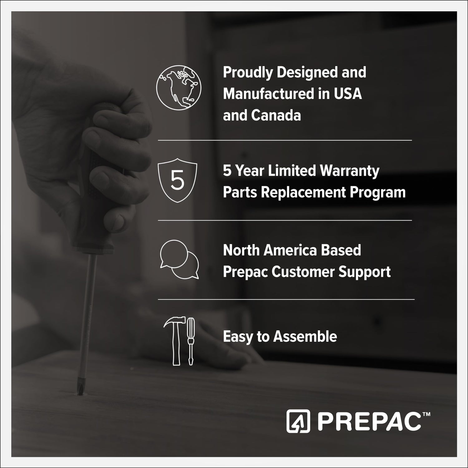 Prepac 2 Drawer Nightstand, 16.25in x 18.75in x 24.5in, Rustic Black