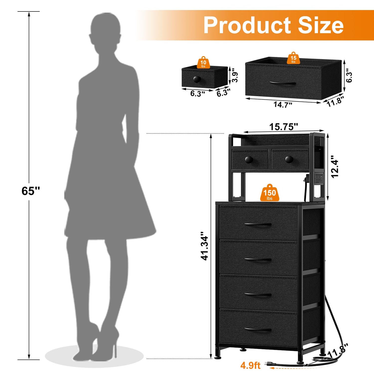 - Modern Side End Table: Black Grey nightstand size: 15.75 "W x11.81 "D x 41.34 "H. This night stand is perfect for bedroom , living room, closet, nursery or kid's room, playrooms, toddlers room, entryway, hallway, and more
