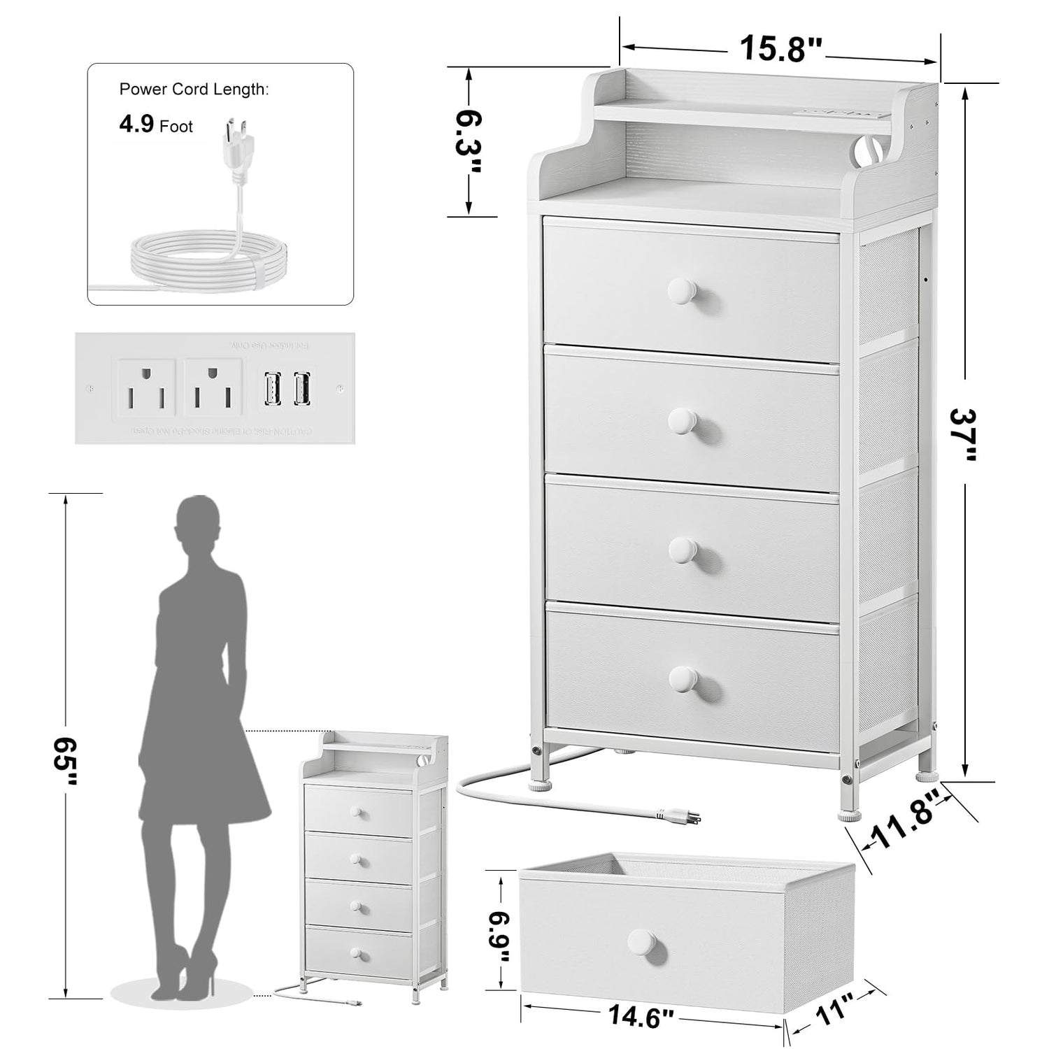 • Tall Night Stand with 4 Drawers: Features 4 folding drawers can fit your different size items. Drawer is made of non-woven fabric with imitation wood grain leather fabric(NO WOODEN). Convenient round handle is easy to pull, and water-proof non-woven fabric is easy to clean