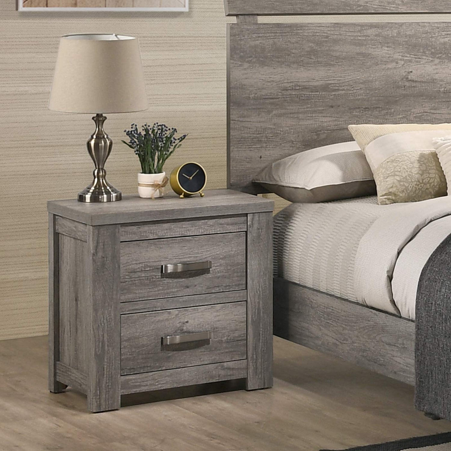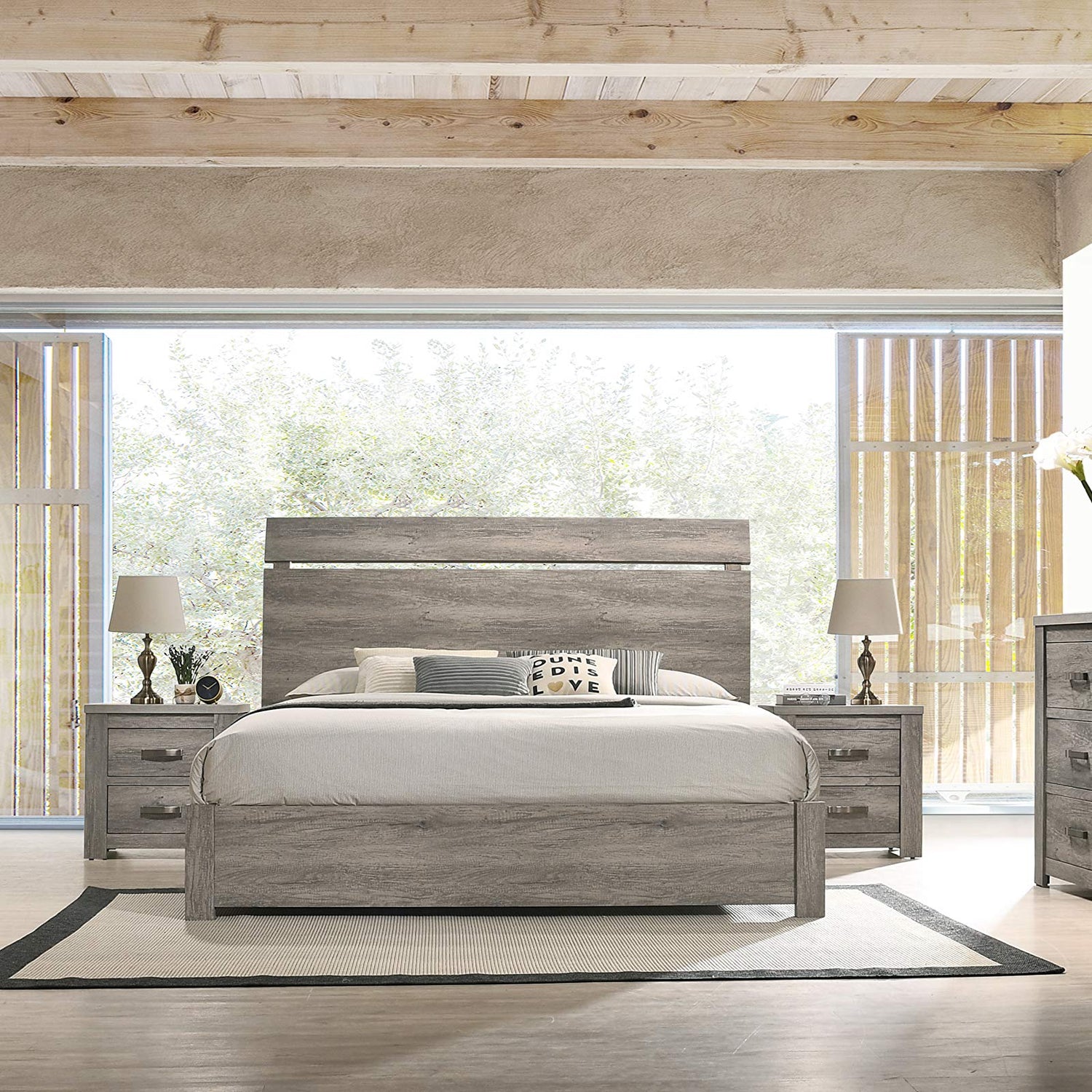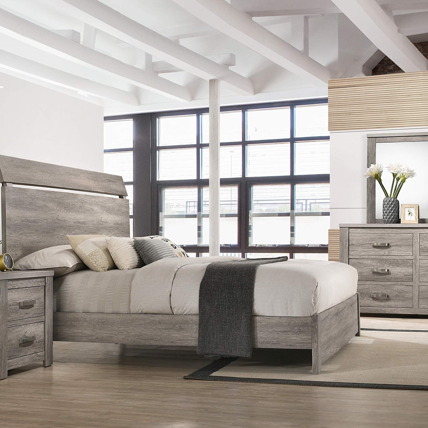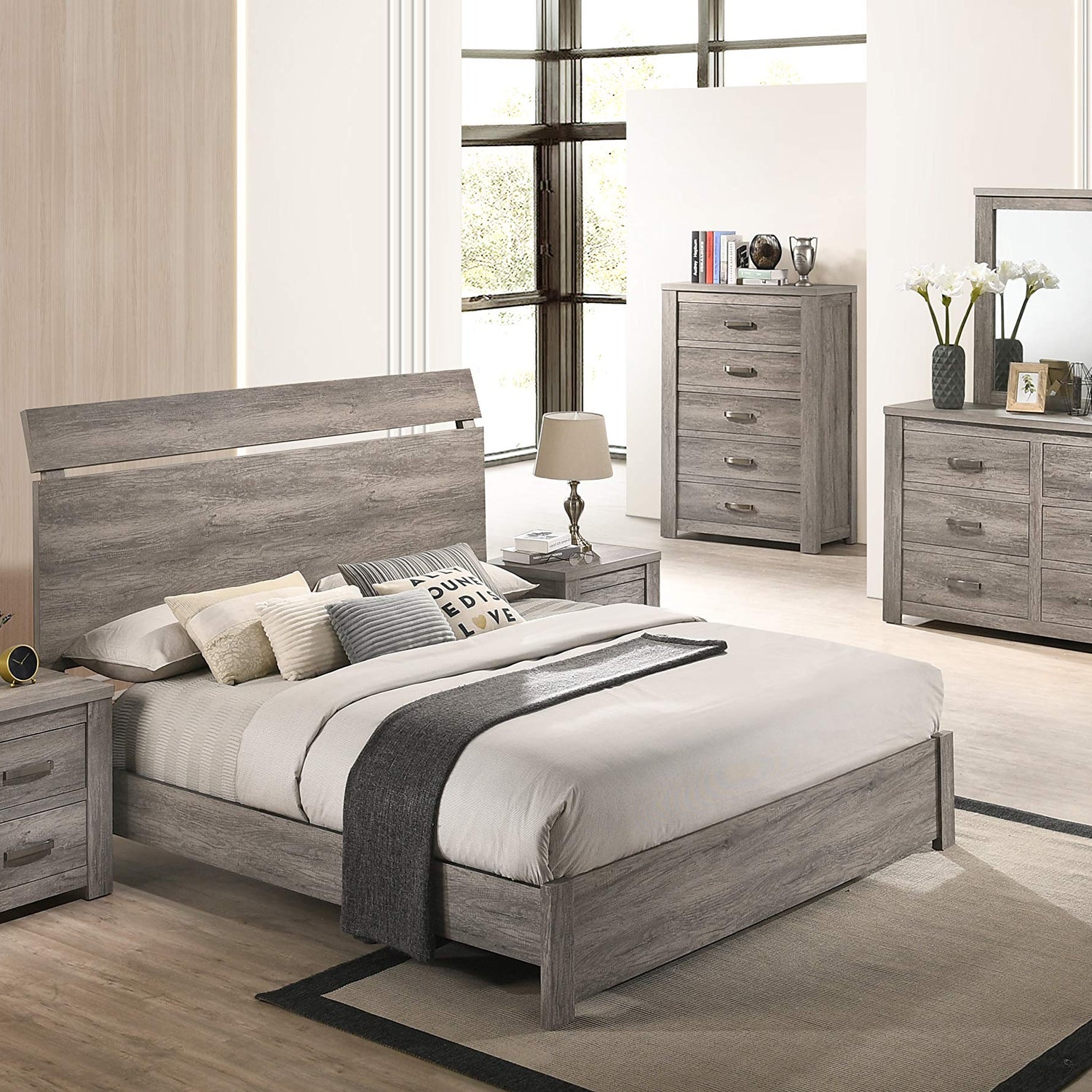 Roundhill Furniture Floren Contemporary Weathered Gray Wood Bedroom Set, Queen Panel Bed, Dresser, Mirror, Two Nightstands, Chest
