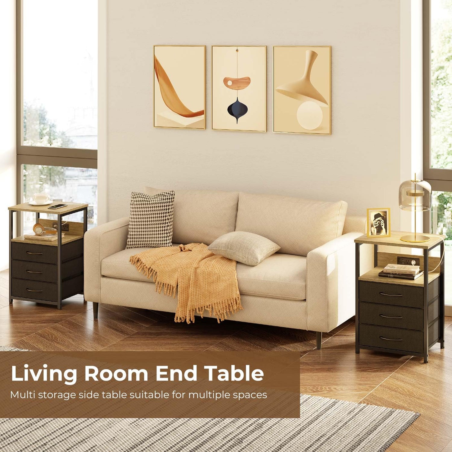 - Sturdy & Durable End Table: Crafted from high-quality engineered wood and metal, this end table ensures stability for both the table and its contents. With an overall dimension of 11.8"D x 15.7"W x 23.6"H, it can support up to 55 lbs on the tabletop and 11 lbs in each drawer. The 4 adjustable feet maintain levelness and prevent floor scratches
