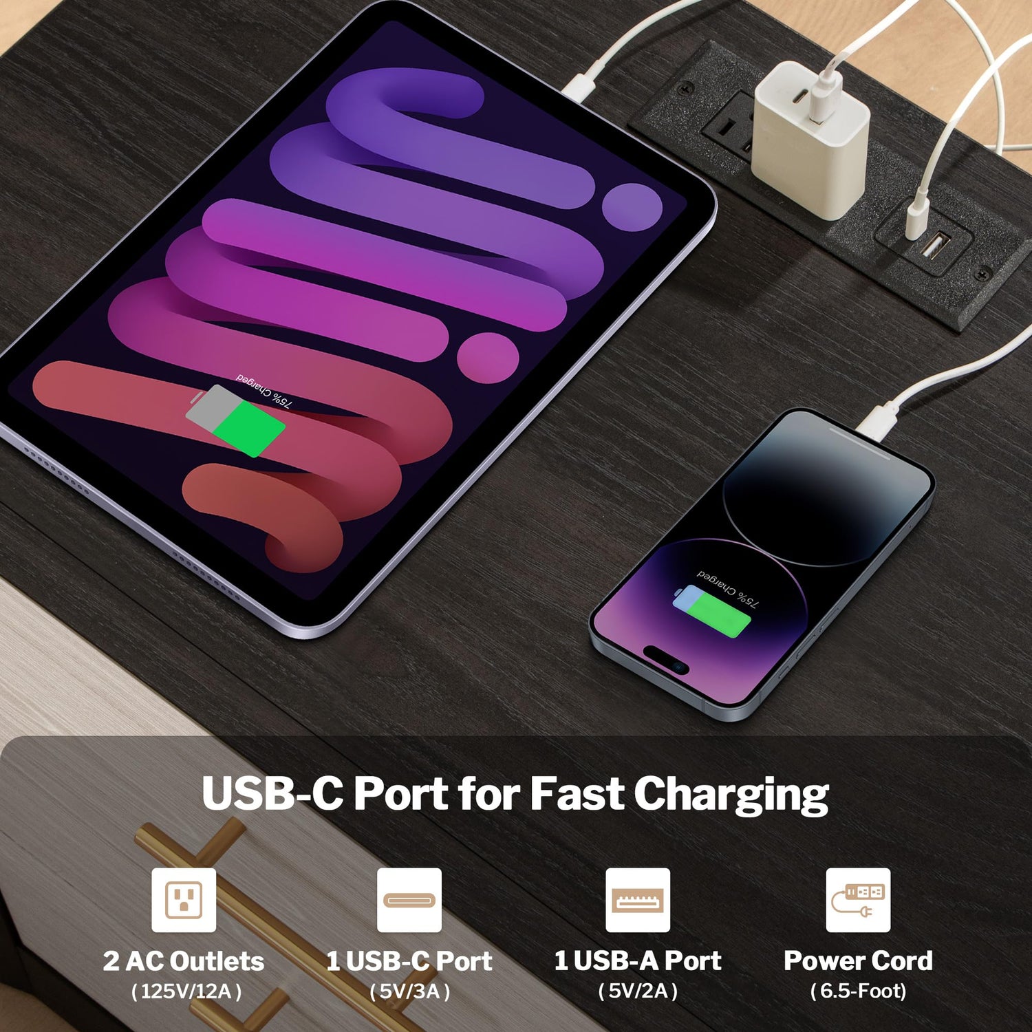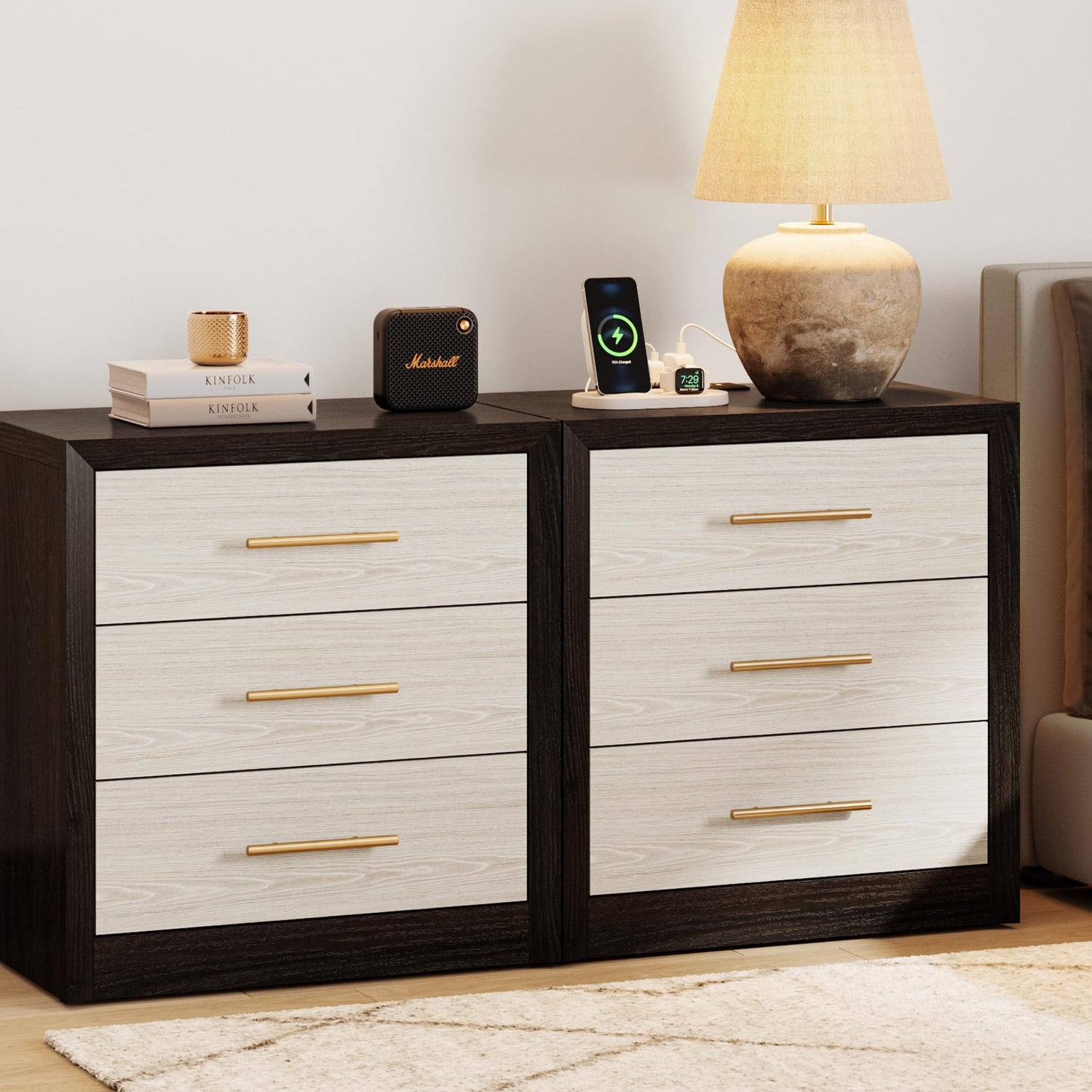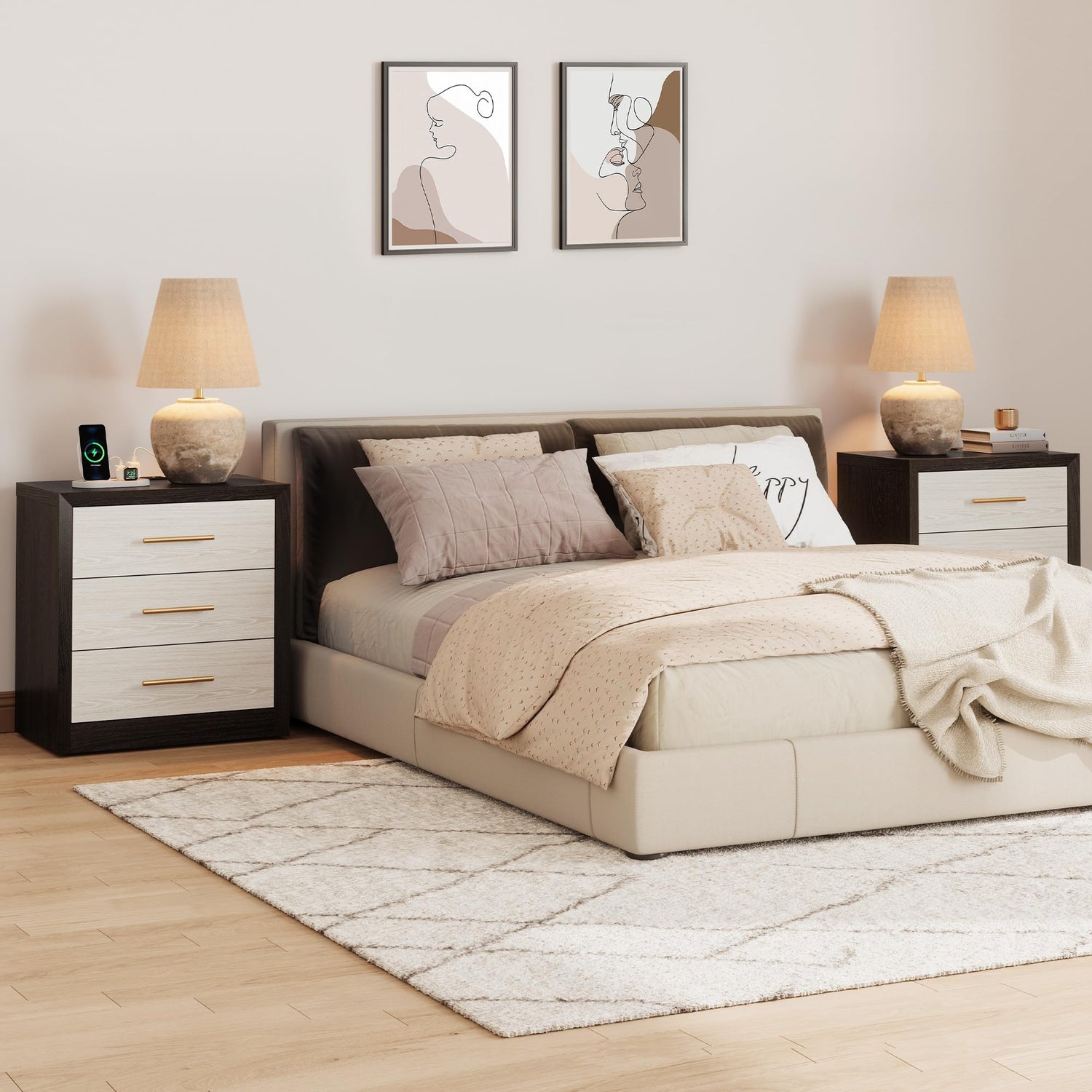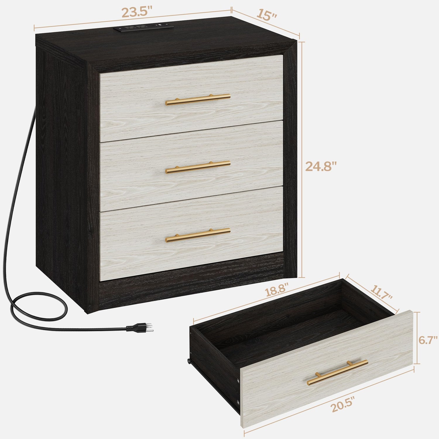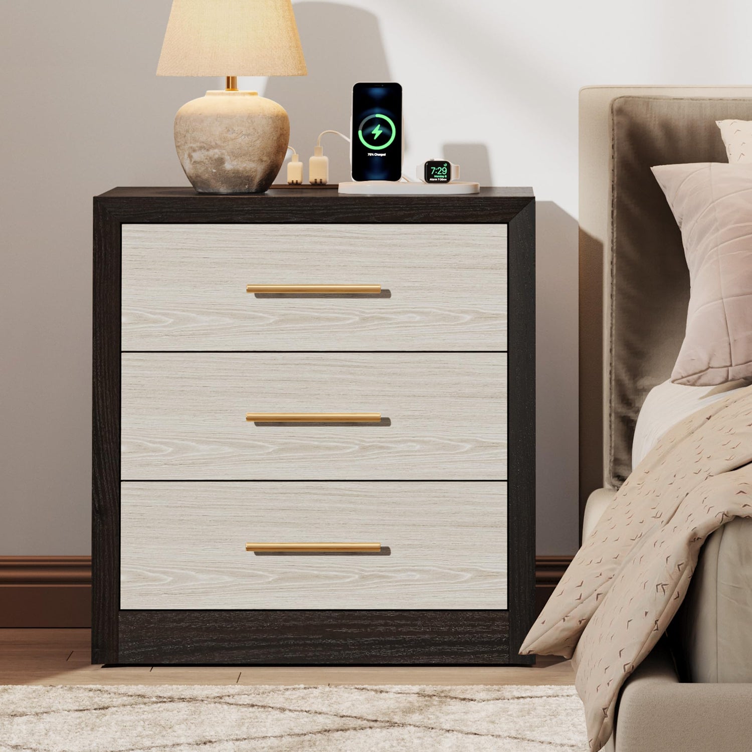 - [ Practical 3-Drawer Nightstand ]- SICOTAS night stand with charger station boasting 2 AC outlets, 1 USB port, and 1 USB-C port for fast charging, catering to your everyday charging needs. Additionally, night stands with 3 full-sized drawers meets all your daily storage needs. No more searching for outlets—everything you need is within reach!
