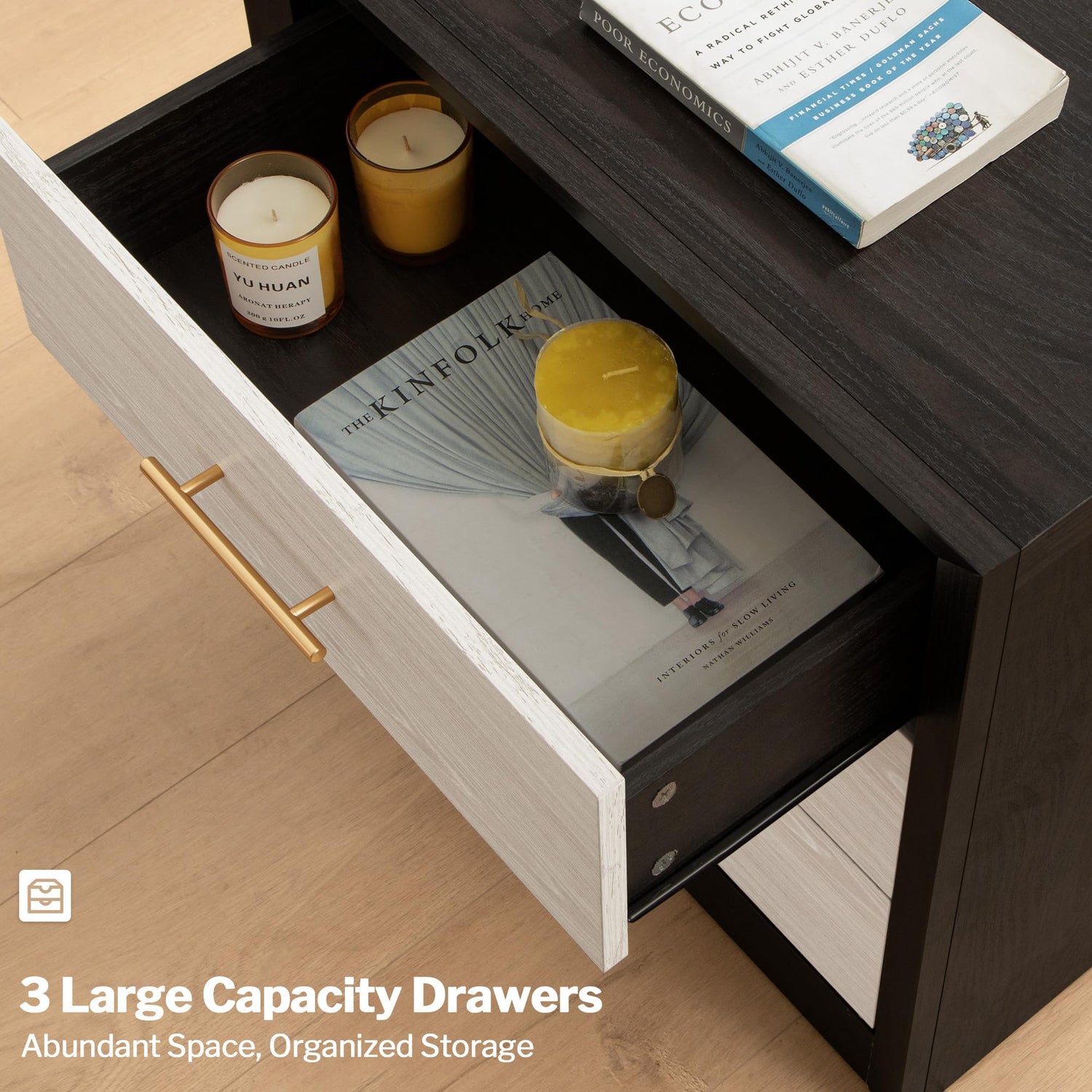 - [ Ample Storage ]- Overall Size: 23.5" W x 15" D x 24.8"H. Equipped with 3 full-sized drawers, our large nightstand provide ample storage for your daily storage needs. Whether books, glasses, journals, or your everyday bedside essentials, tall nightstand set offers plenty of room to keep your items neat, accessible, and easy to find. Enjoy ample storage wide nightstand offering plenty of room for all your bedside essentials.