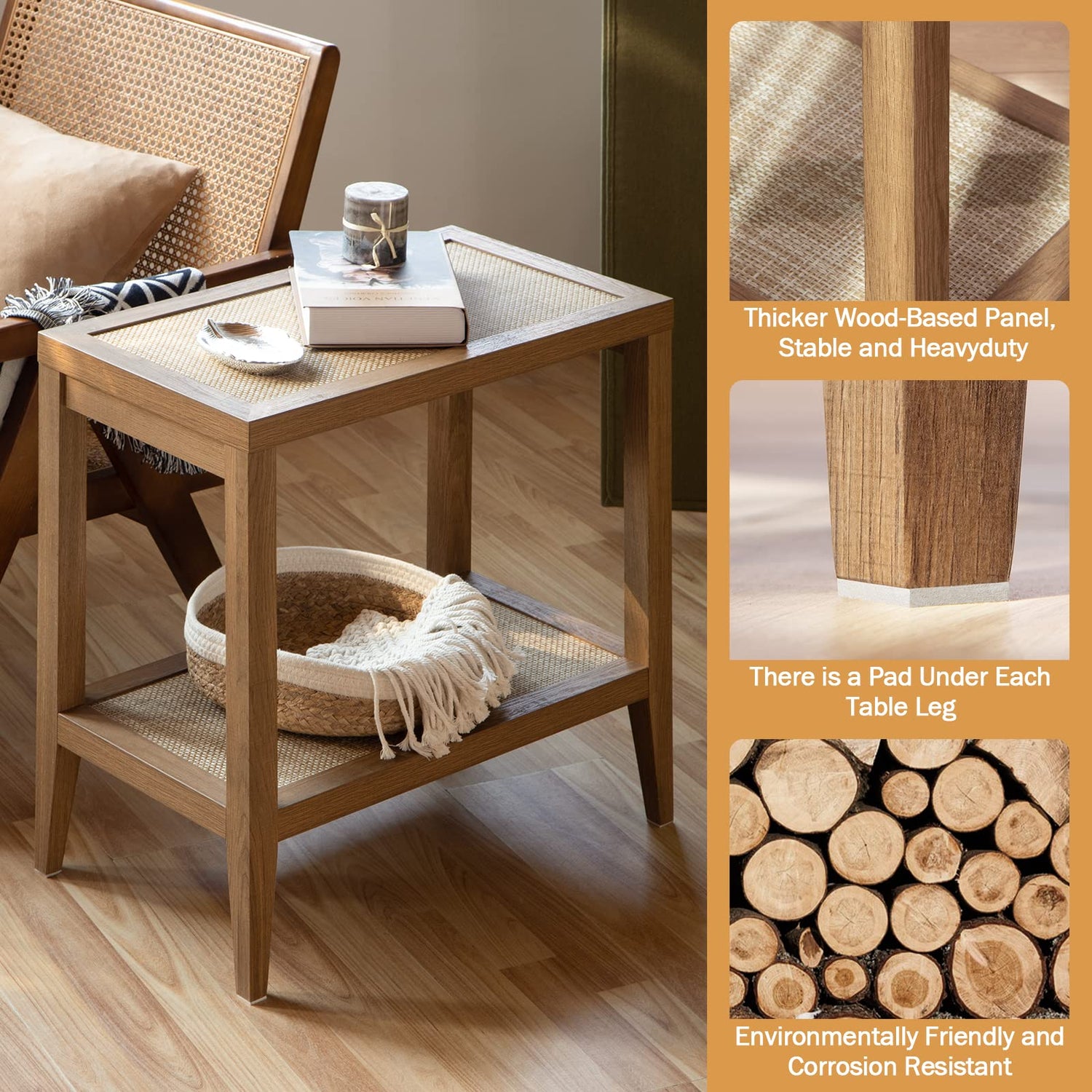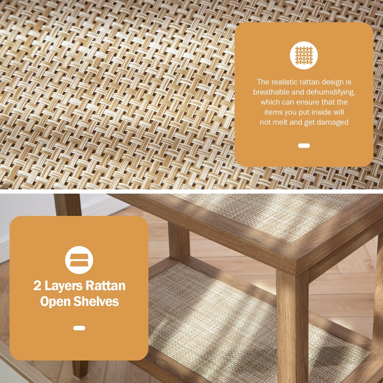 - Large and Practical Night Stand - The Boho rattan side table features a two-tiered open storage design, a unique extra top shelf, and a spacious tabletop with a realistic rattan texture to fit your cozy home and provide more space for books, snacks, and drinks.