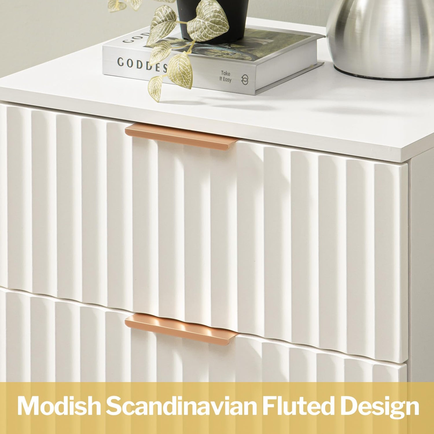- 🌊【Chic Fluted Design】With its modish Nordic fluted elements and white spray-painted finish, this night stand is sure to catch your eye. The sleek and modern design makes it a versatile addition to any room in your home.