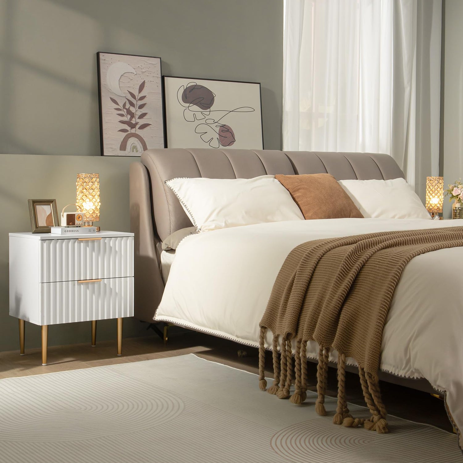 - 🏡【Practical Features】Equipped with 2 full-sized drawers, this nightstand effortlessly meets all your daily storage needs. The drawers slide smoothly and quietly, making it easy to access your belongings.