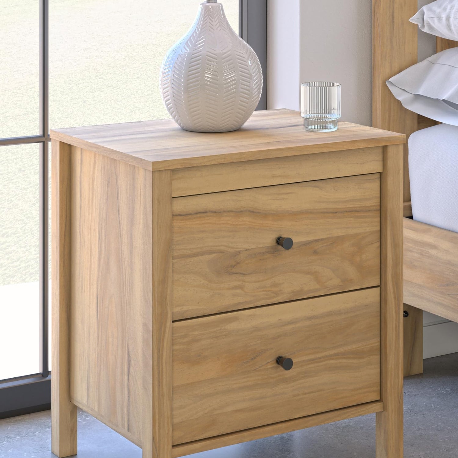 - 2-DRAWER NIGHTSTAND: This bed side table puts the dream of a casual bedroom retreat beautifully within budget. Its smooth-gliding drawers are exceptionally handy for bedside storage