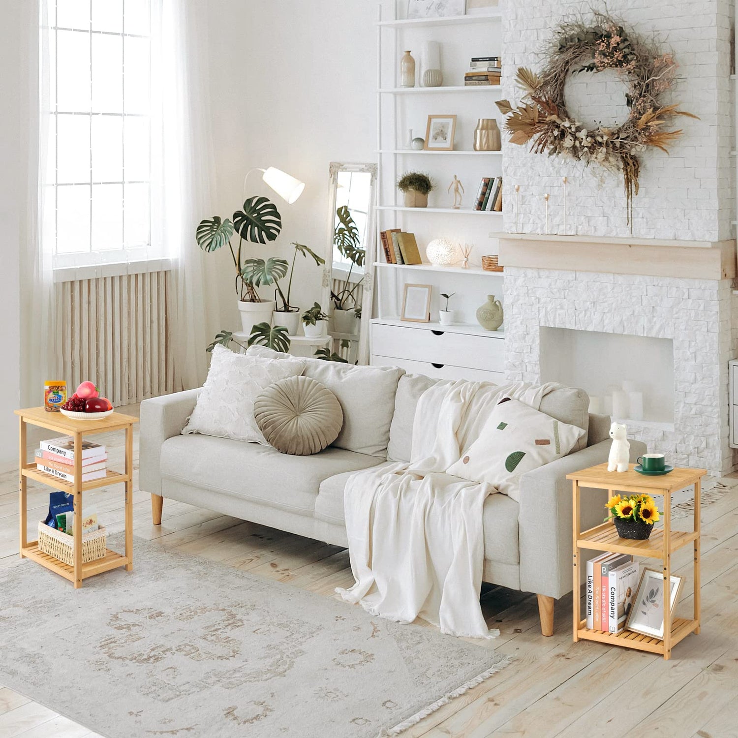 smusei Side Table Set of 2 End Tables Living Room for Small Spaces Farmhouse Bedside Table for Bedroom Guest Room Office, Bamboo