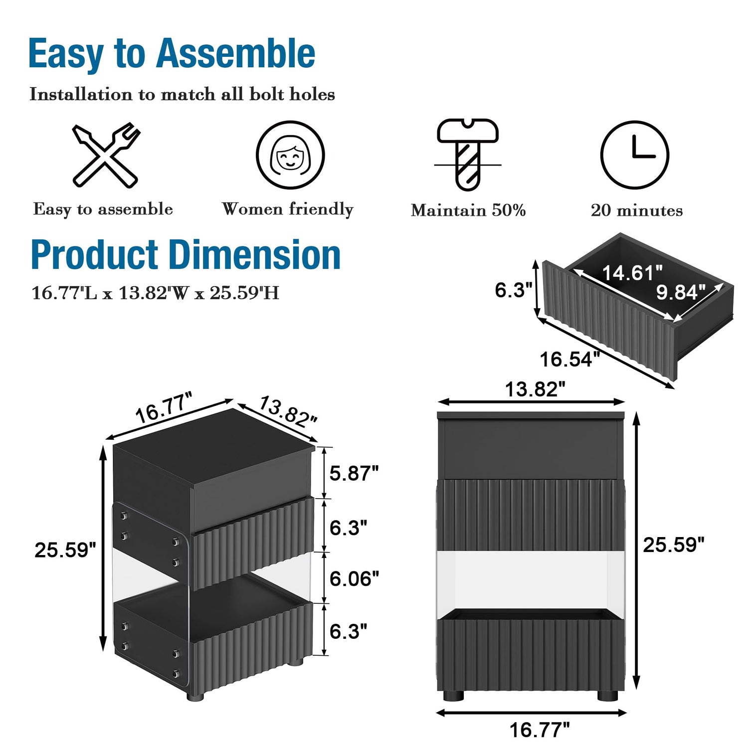 - Secure & Easy Assembly: Hidden lockable drawer safeguards valuables. One-person setup in 20 mins: Attach rails, assemble drawers, connect glass, top plate—done! nightstand with gun drawer