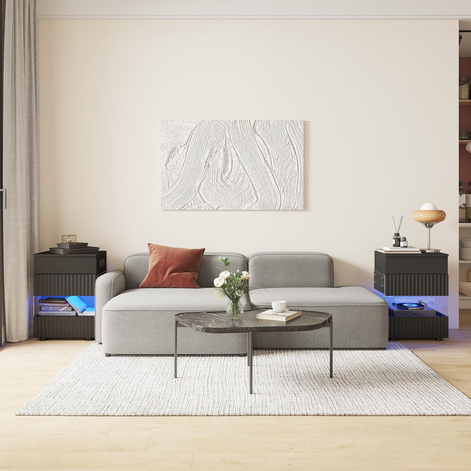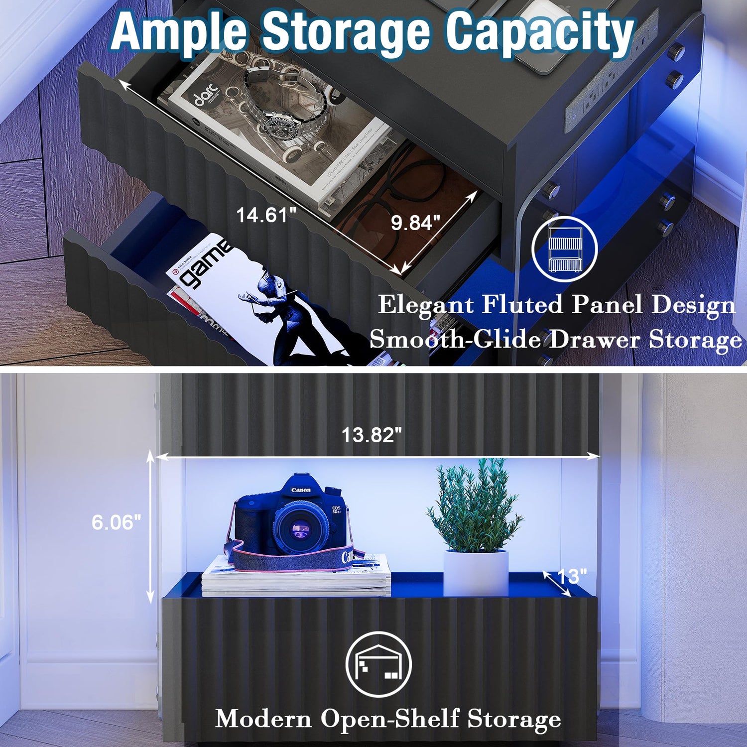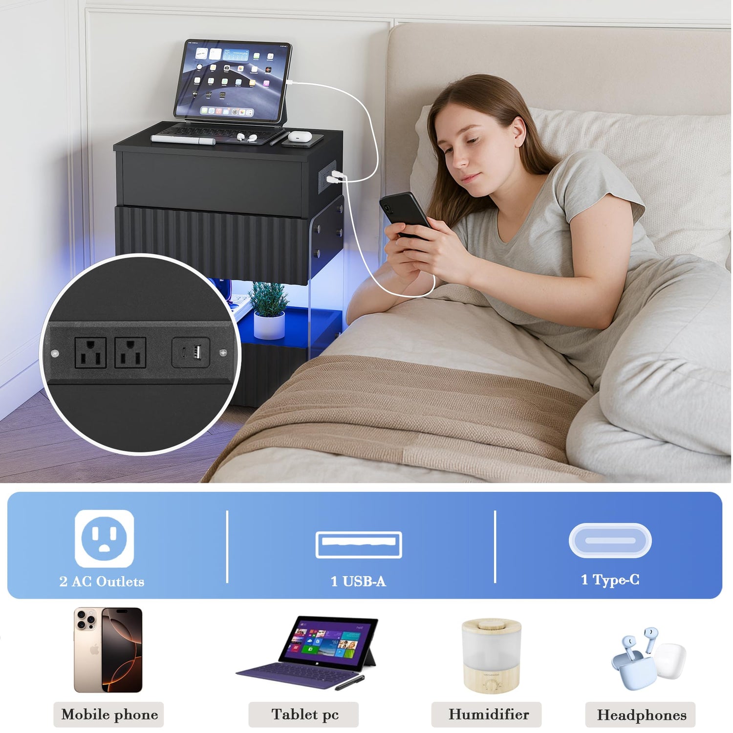 STHOUYN Bedroom LED Nightstand with Gun Drawers, Black Modern Night Stand with USB & Type-C Charging Station, Smart Nightstand Noght Stand, Bedside Table Gun Safe Side End Tables Office (1, Black)