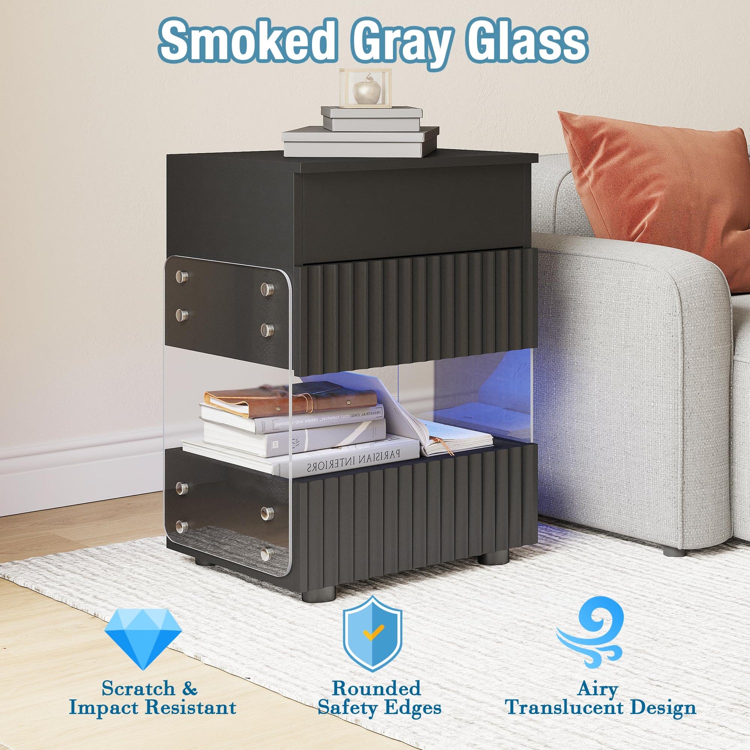 - Sleek Modern Design: Smoked gray glass + wave-textured fluted panels elevate any space. Fits bedrooms, offices, or living rooms—versatile side tables bedroom essential. gun safe night stand